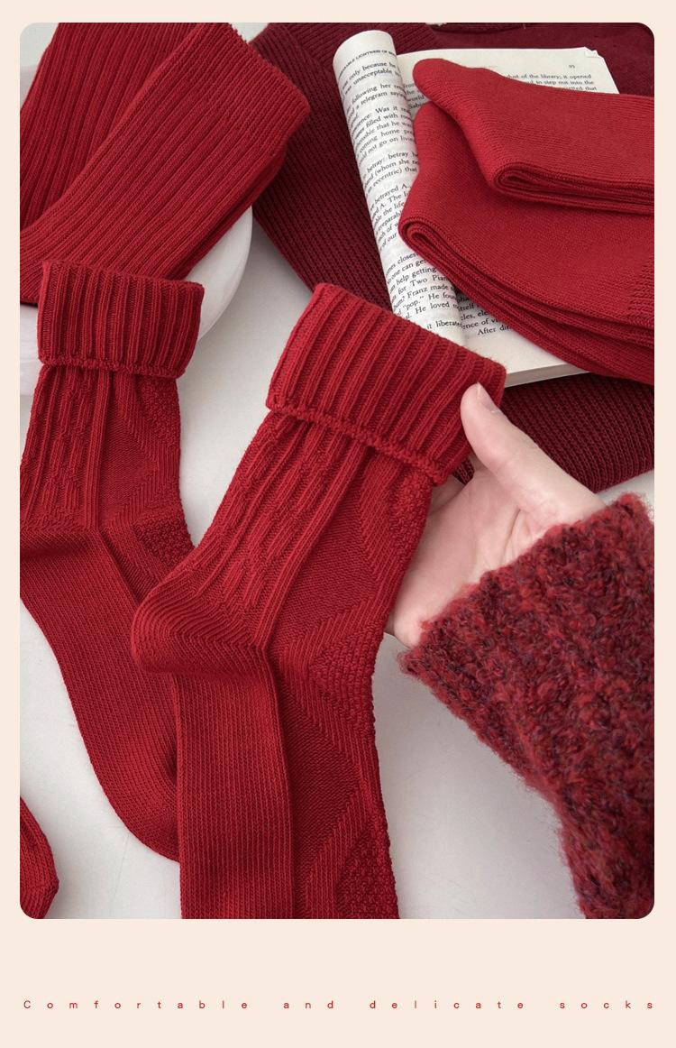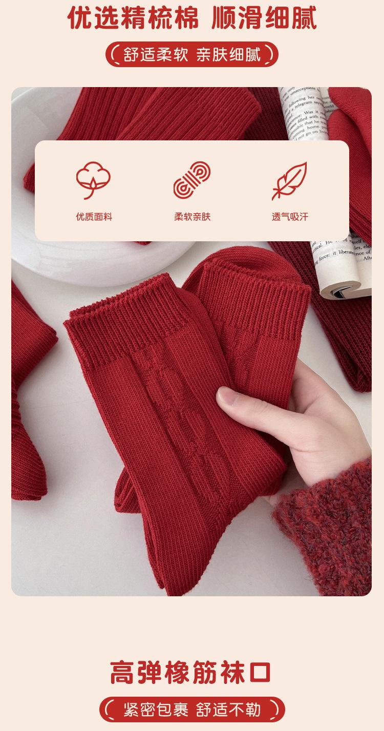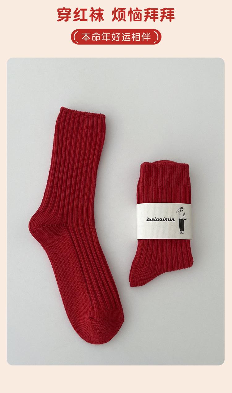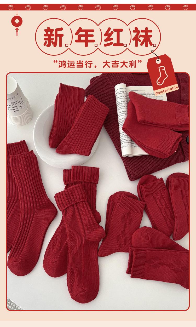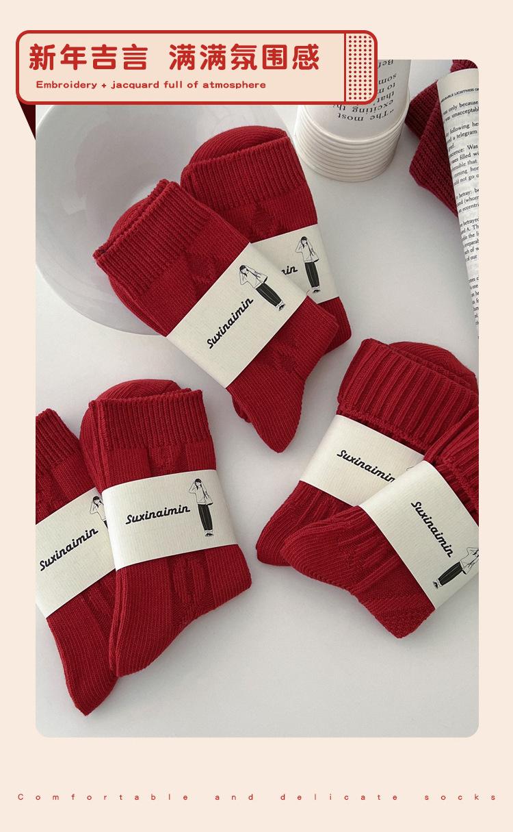 Suxinaimin ano de nascimento meias vermelhas Ano Novo meias vermelhas ano coelho feminino meias de algodão de boa sorte estilo japonês meias de comprimento médio da panturrilha