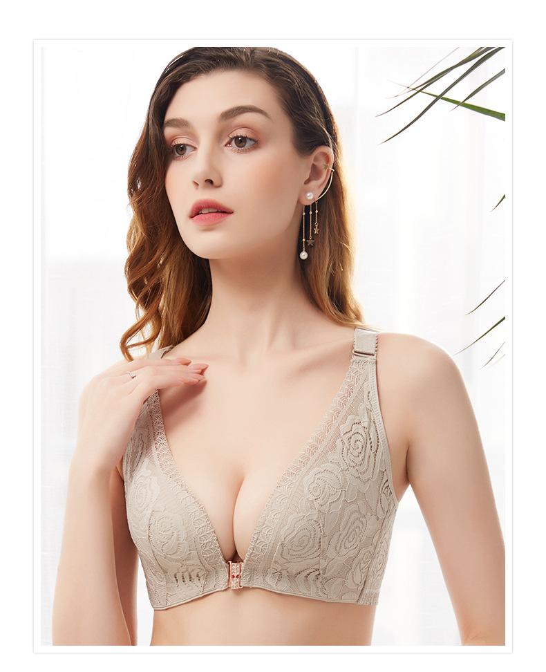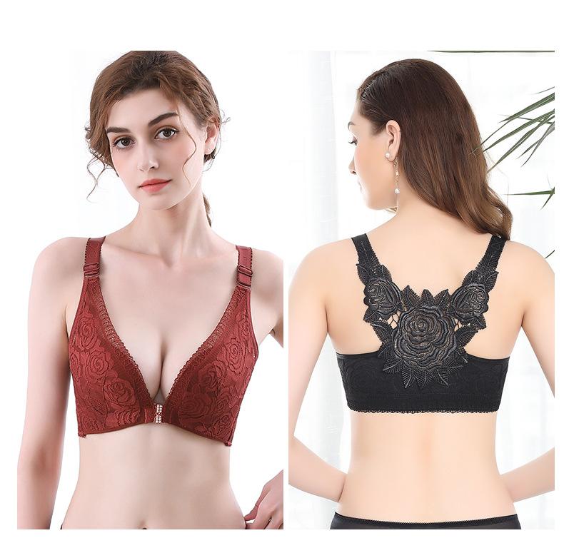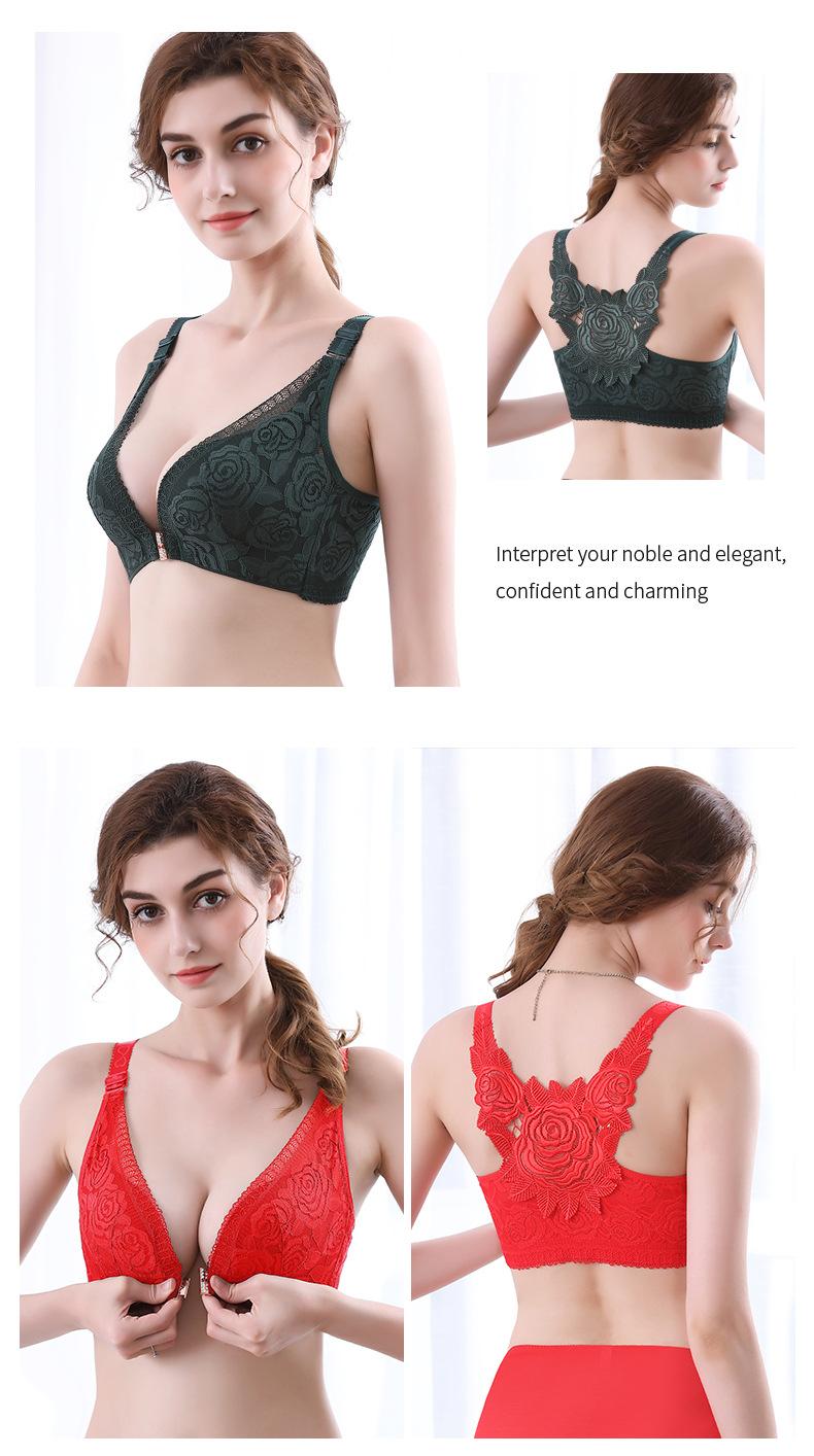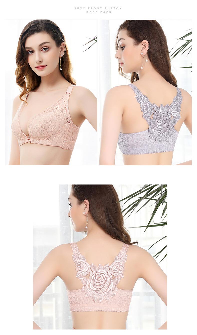 Novo Sutiã de Tamanho Grande com Fivela Frontal Push-up Ajustável Grande Copo Sem Anel de Aço Rosa Linda Volta Lace Sexy Underwear