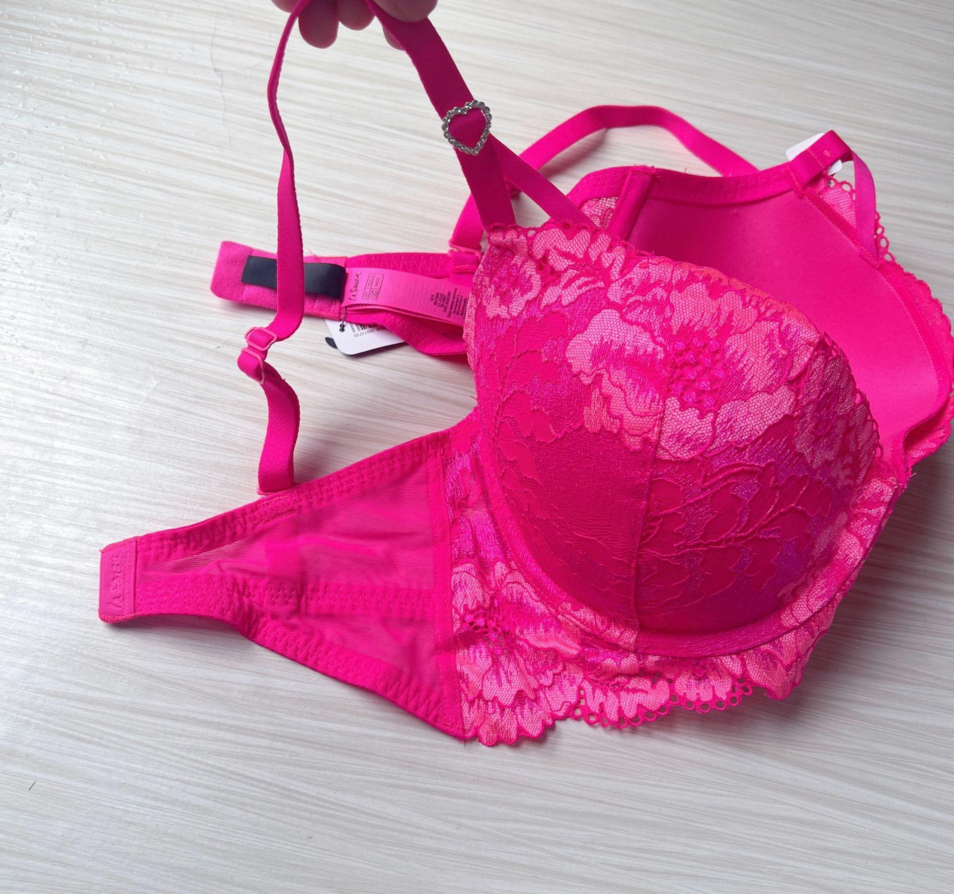 Compre La novo sutiã fino sexy renda cor brilhante plus size atacado com anel de aço renda calcinha no atacado no Joom.pro