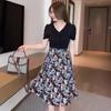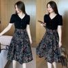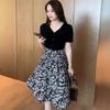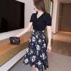 Vestido Floral Falso de Duas Peças para Mulheres 2025 Verão Novo Estilo Modelador Cobre a Barriga Comprimento Médio Saia A-Line Tendência