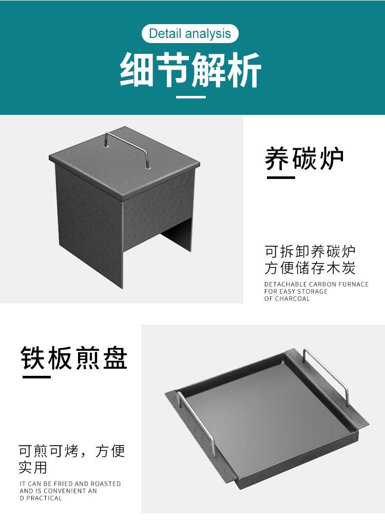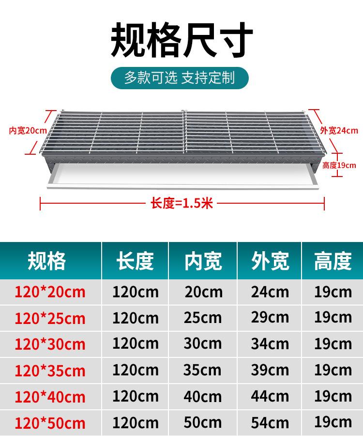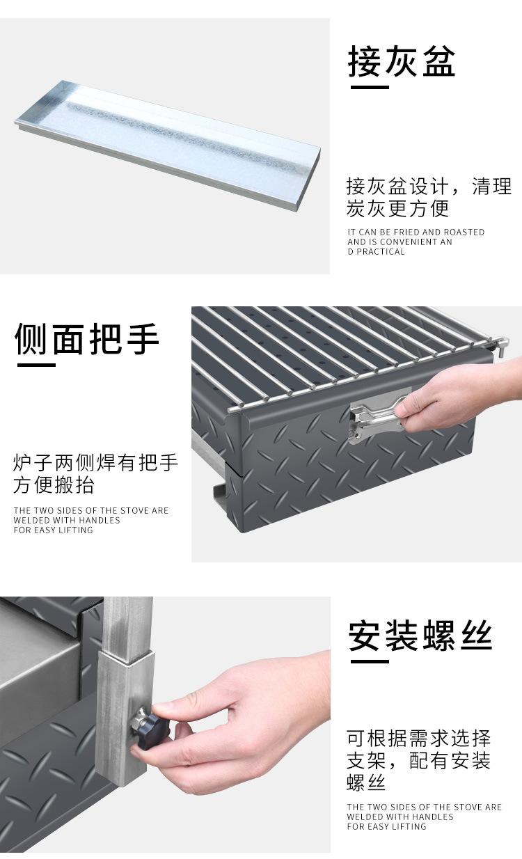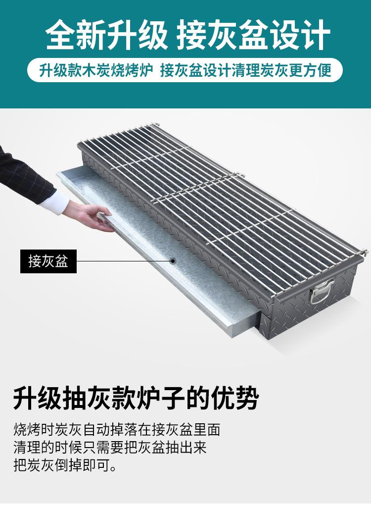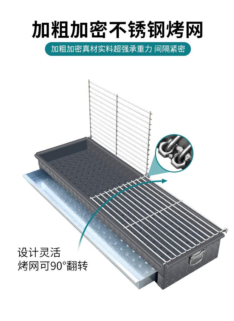 Churrasqueira a carvão comercial extra grande, gaveta alargada e espessada, churrasqueira doméstica, churrasqueira externa, conjunto de caixa de churrasqueira