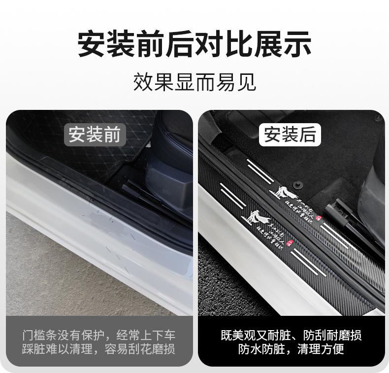 Barra de peitoril de carro padrão de fibra de carbono protetor de porta pedal proteção anticolisão decorativo soleira barra adesivo