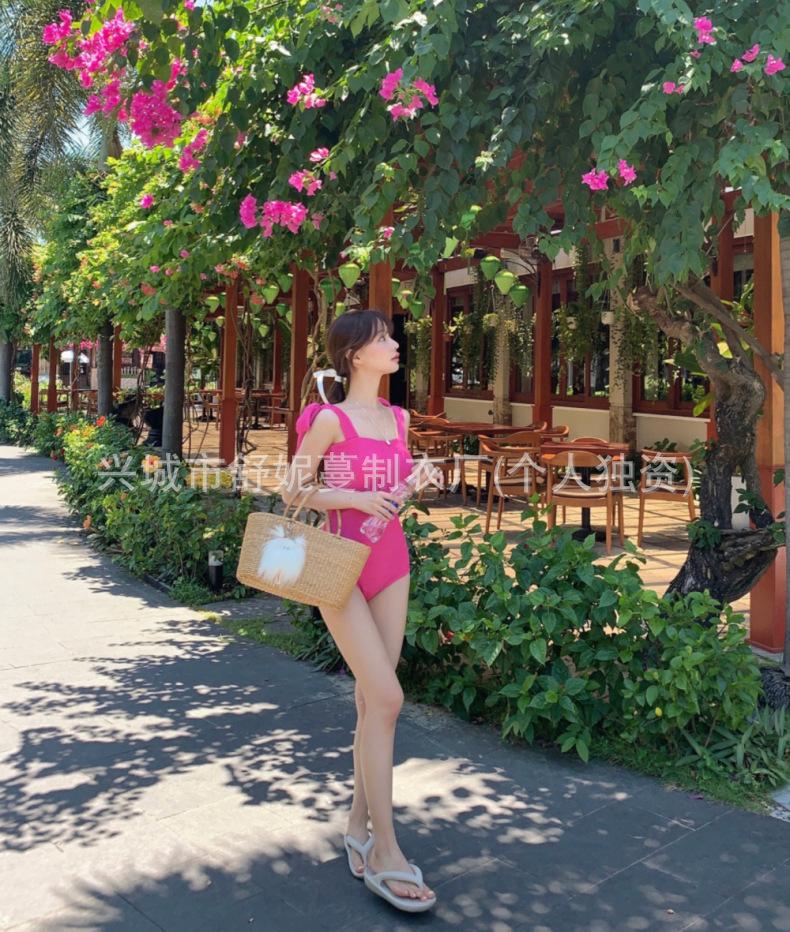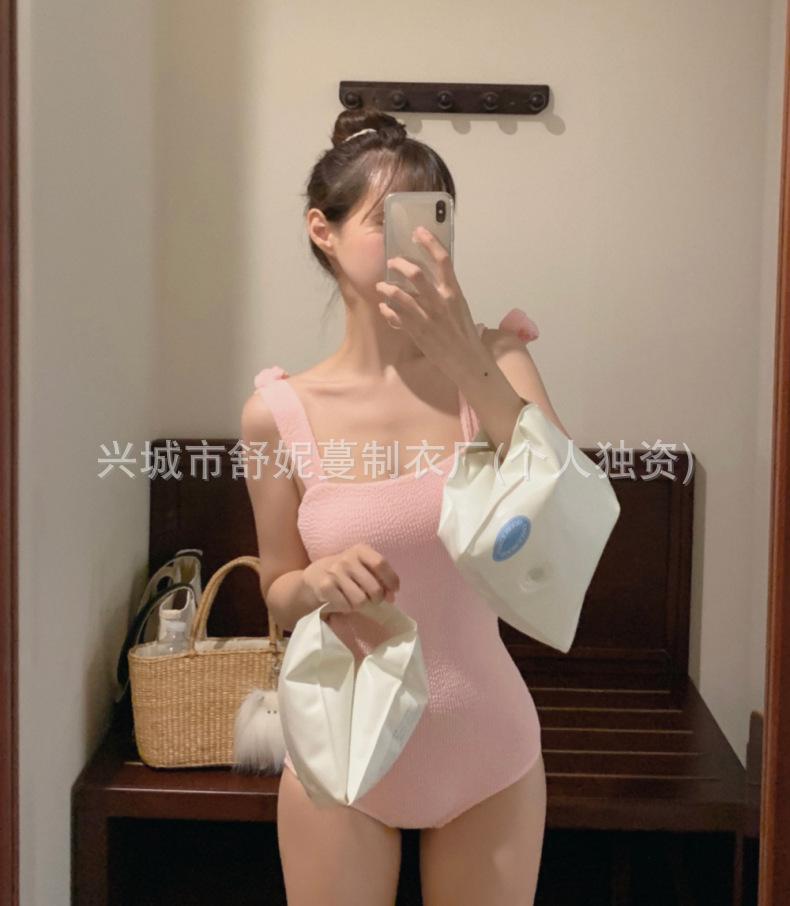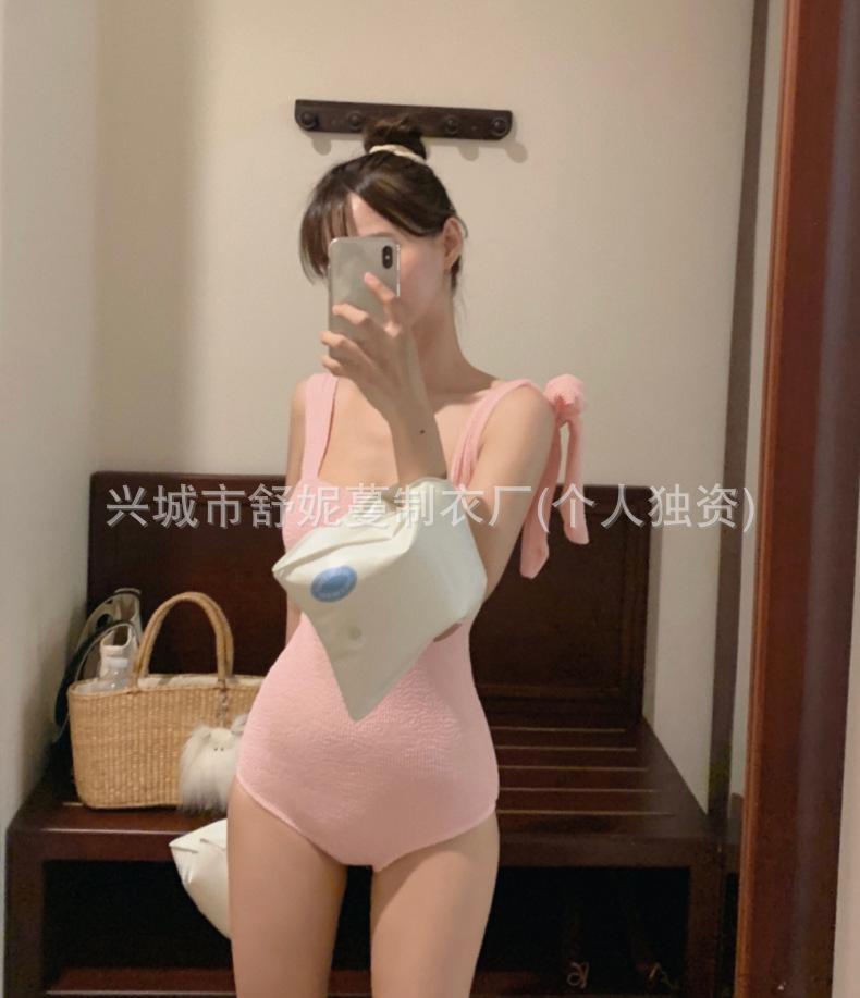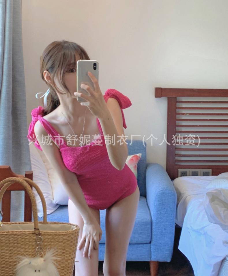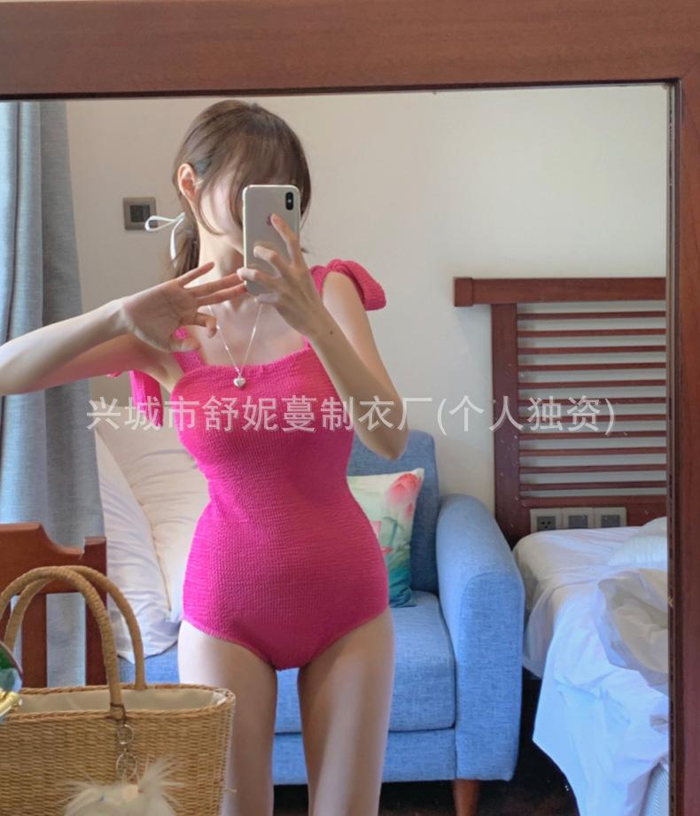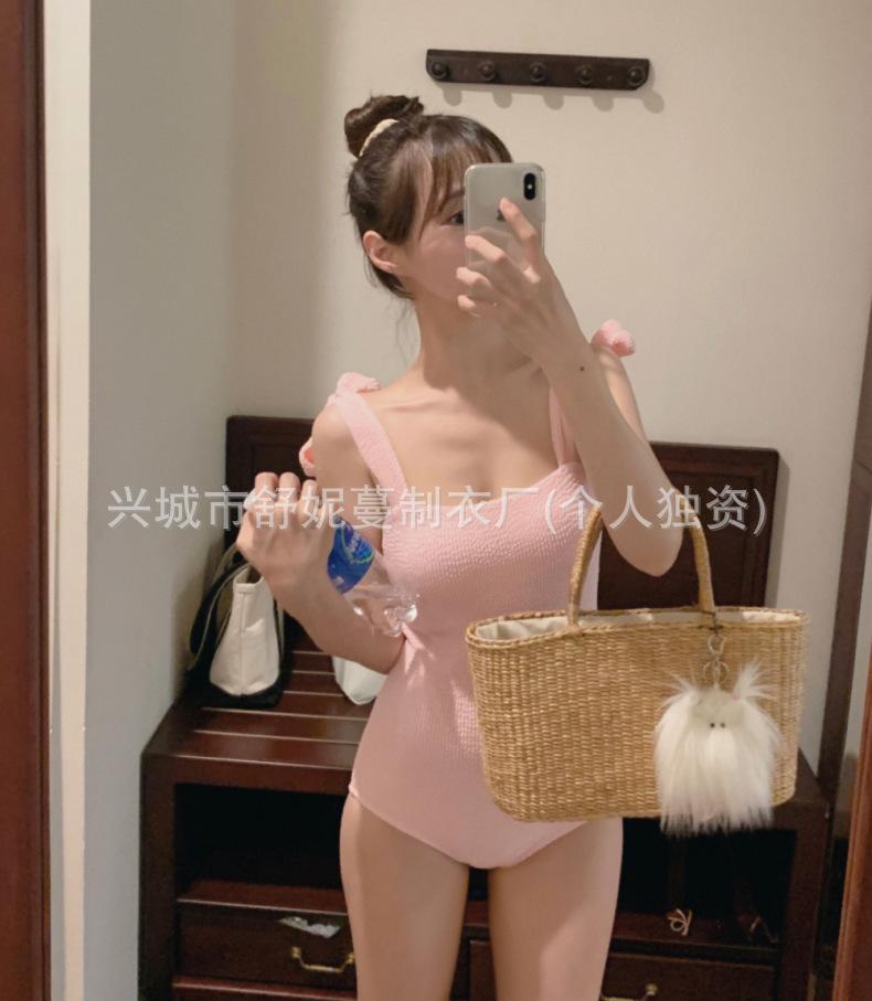 Compre Coreia do Sul Ins Estilo Cor Sólida Dupla Alça de Ombro Tubo Top Sexy Cobertura de Carne Magro Biquíni de Uma Peça Pequeno Peito Puro Maiô no atacado no Joom.pro