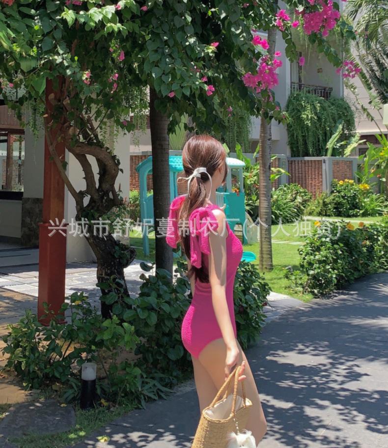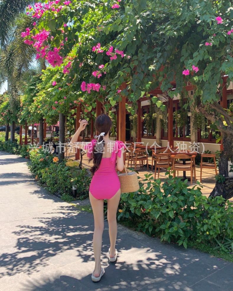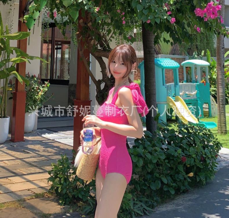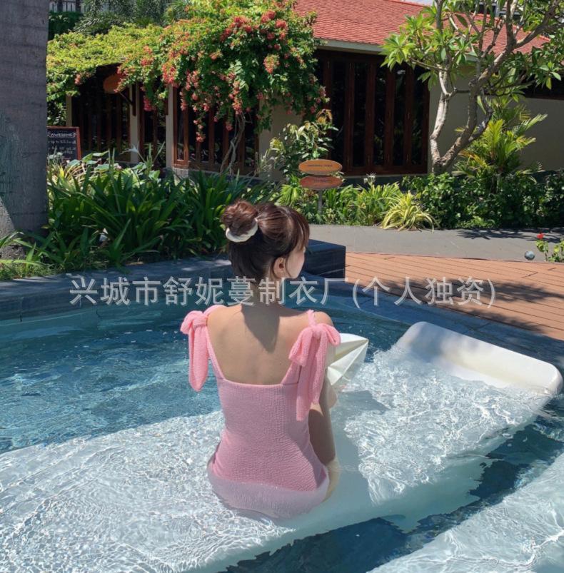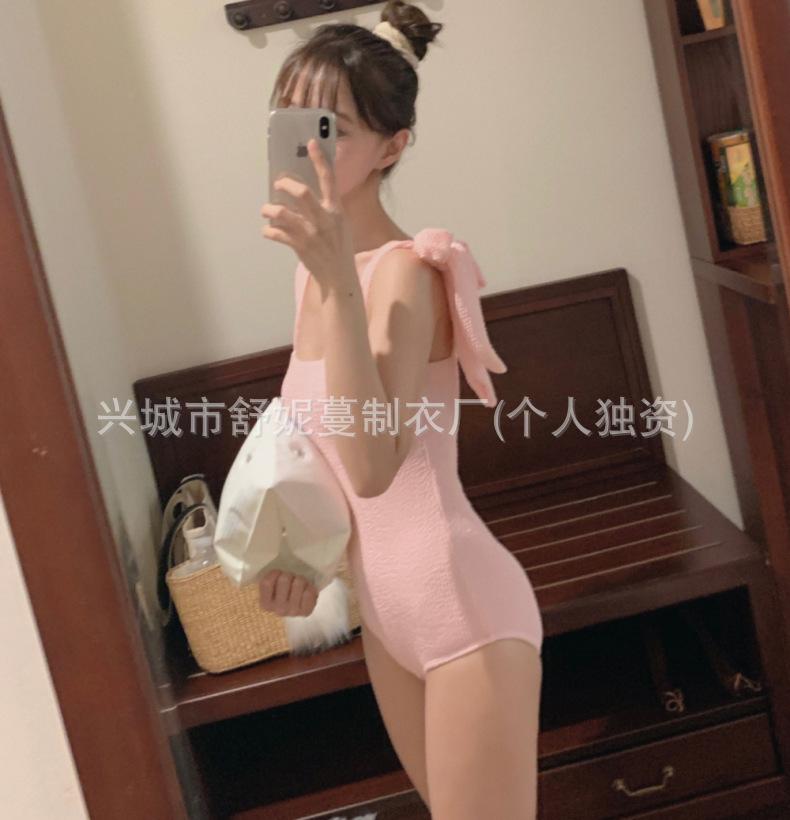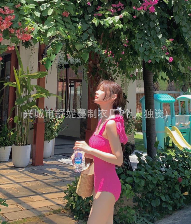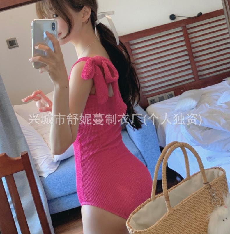 Compre Coreia do Sul Ins Estilo Cor Sólida Dupla Alça de Ombro Tubo Top Sexy Cobertura de Carne Magro Biquíni de Uma Peça Pequeno Peito Puro Maiô no atacado no Joom.pro