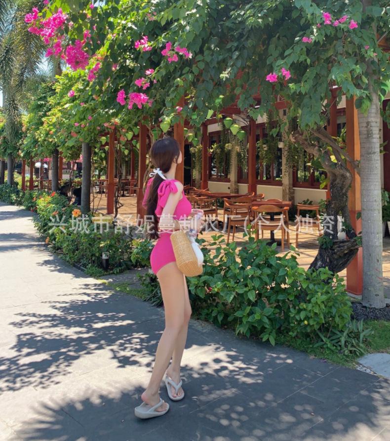 Coreia do Sul Ins Estilo Cor Sólida Dupla Alça de Ombro Tubo Top Sexy Cobertura de Carne Magro Biquíni de Uma Peça Pequeno Peito Puro Maiô