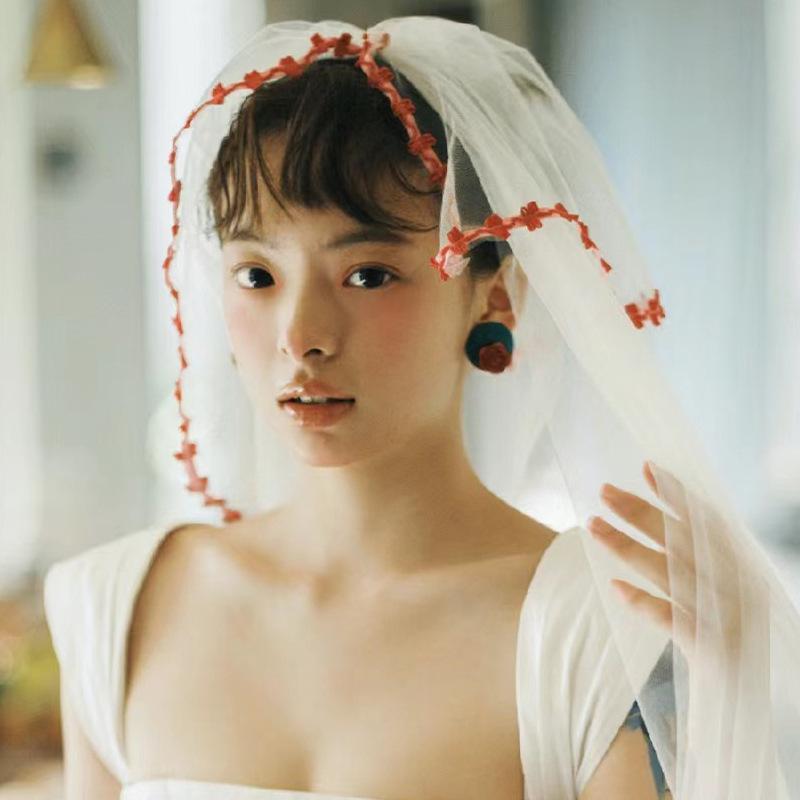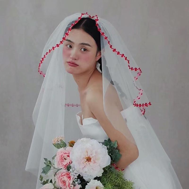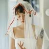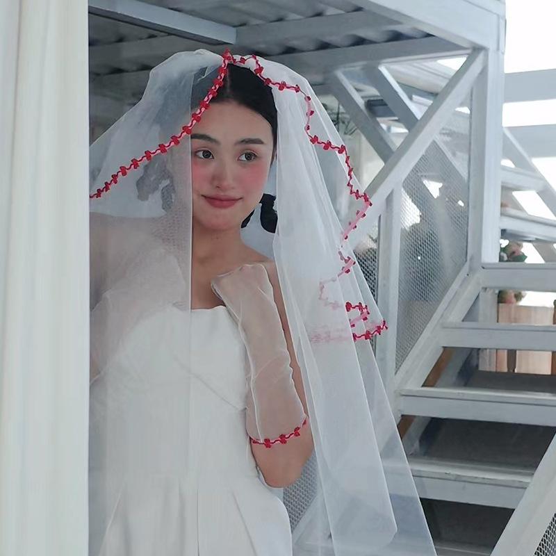 Novo véu de noiva laço vermelho personalizado cavalo fantasma cocar vestido de noiva acessórios foto foto acessórios para o cabelo