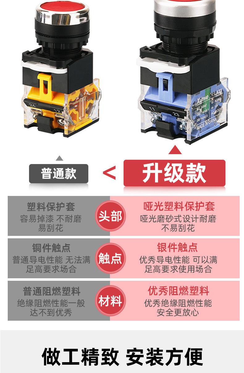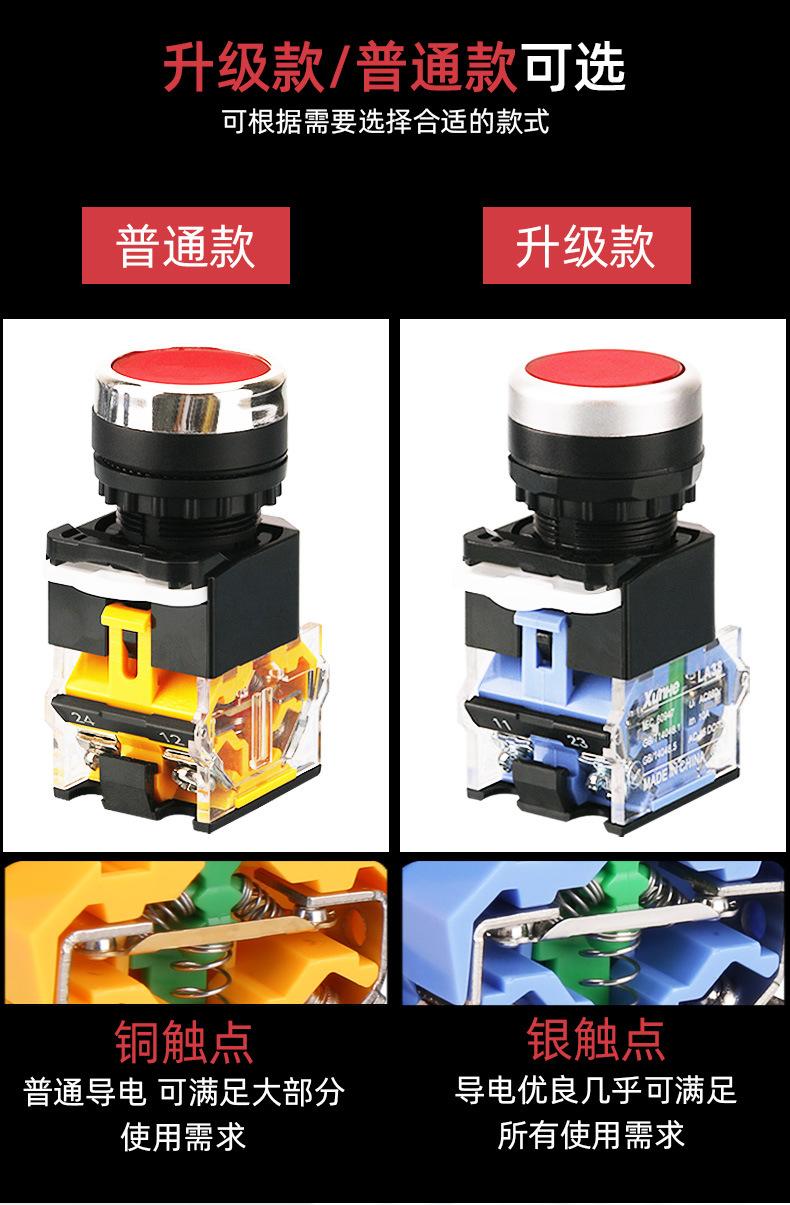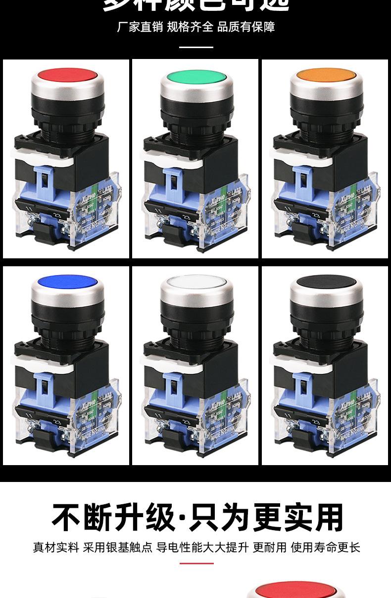 Red flat button-self-resetting upgraded model, Green flat button-self-resetting upgraded model, Yellow flat bu...
