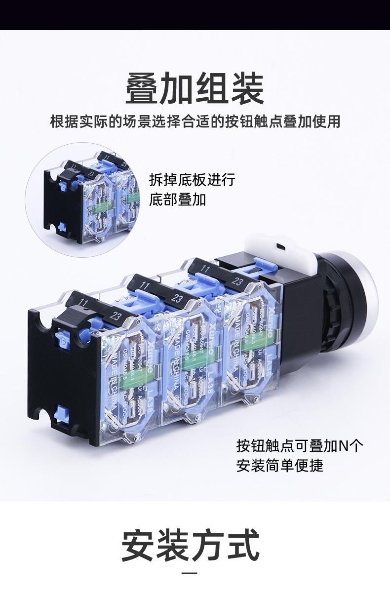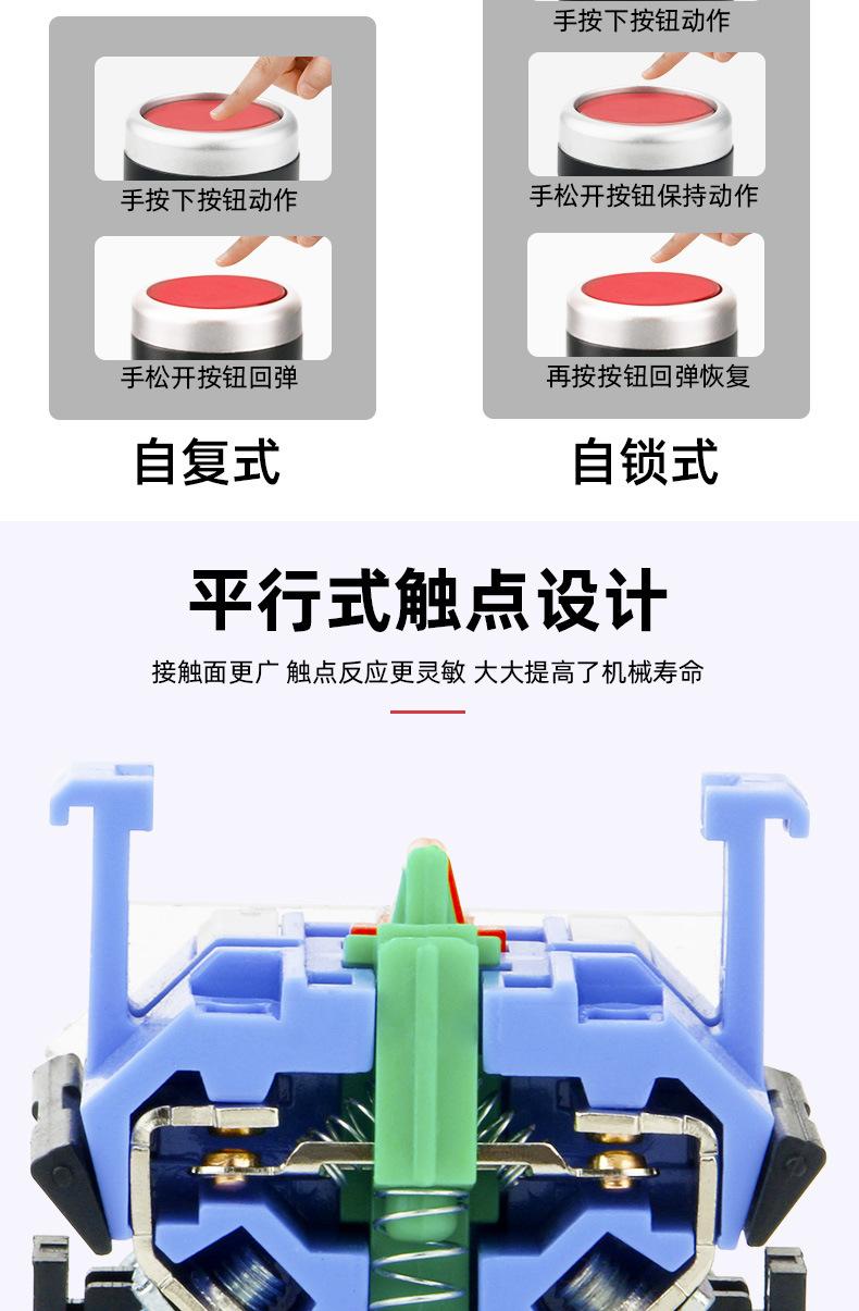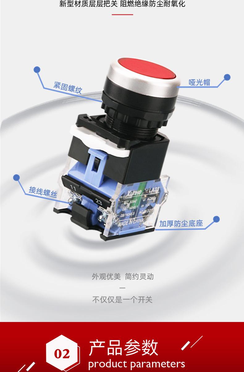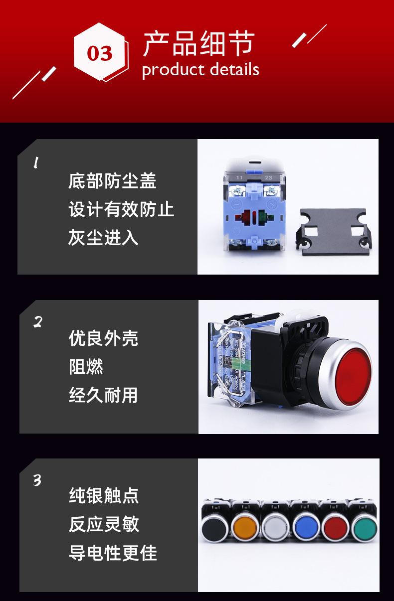 Red flat button-self-resetting upgraded model, Green flat button-self-resetting upgraded model, Yellow flat bu...