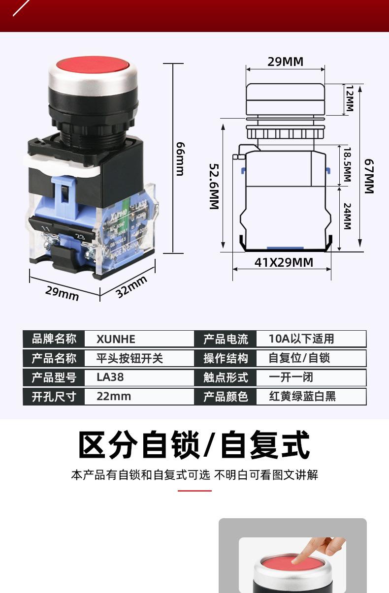Interruptor de botão de 22MM LA38-11BN interruptor de alimentação start stop auto-reset auto-travamento avançando cabeça plana redonda