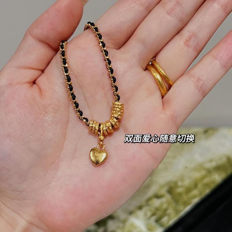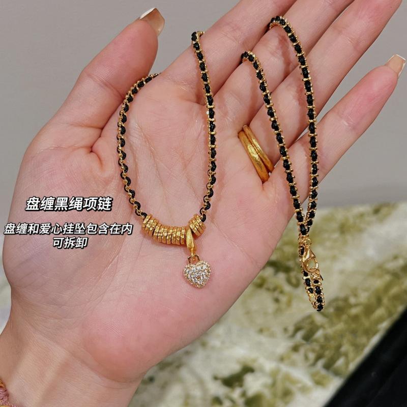 Tichen Design Novo Fogong Bobina Corda Preta Colar Removível Handmade Green Beads All-match Casual Matching