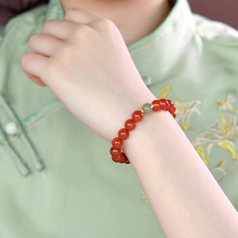 2024 Novo Estilo Ágata Vermelha Natural Jade Hetian Pulseira Feminina Nicho Luxo Leve Requintado Calcedônia Contas Contas Pulseira