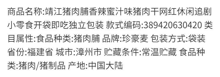 Carne de Porco Seca Jingjiang Sabor Mel Apimentado Carne de Porco Seca Celebridade da Internet Lanches Casuais de Drama Pronto para Comer Embalado Individualmente