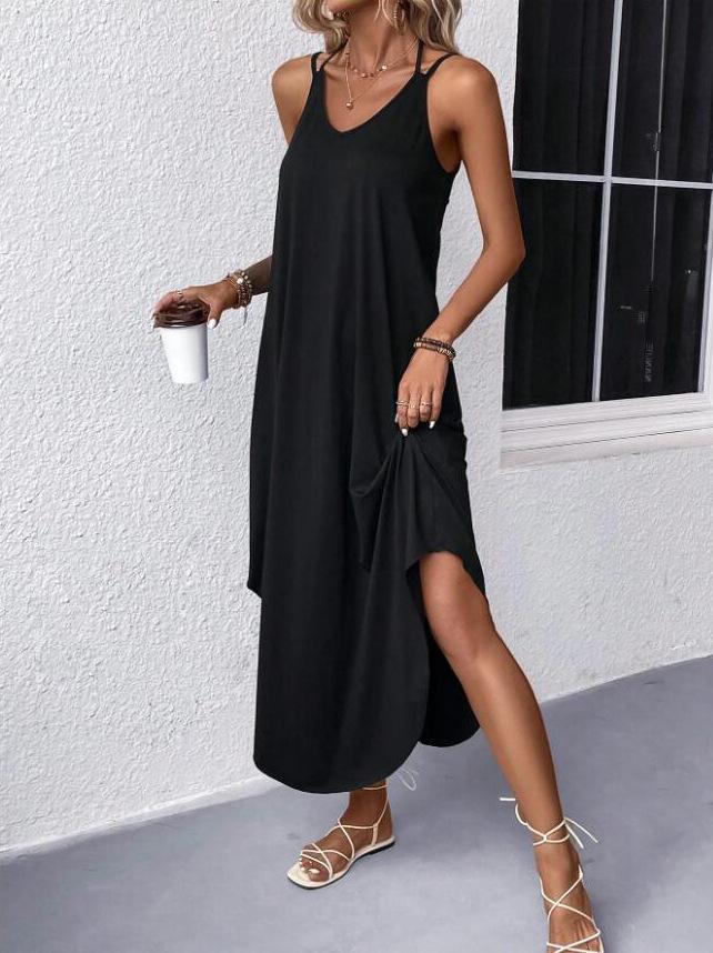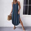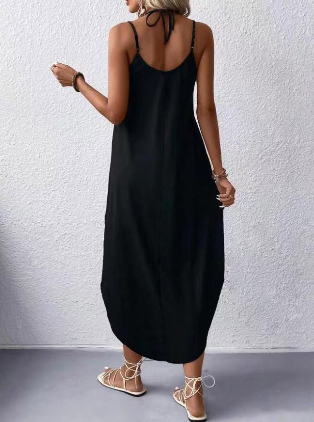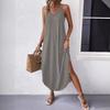 2024 Verão Europeu e Americano Estilo Elegante Feminino Algodão Poliéster Suspensório Estilo Halter Neck Cor Sólida A-line Vestido Feminino
