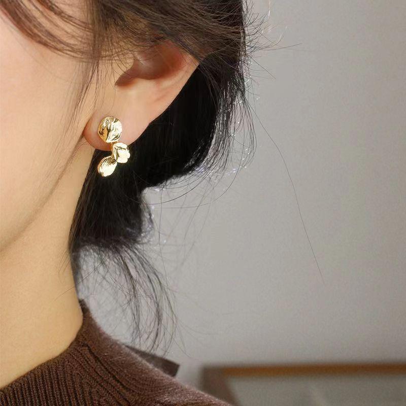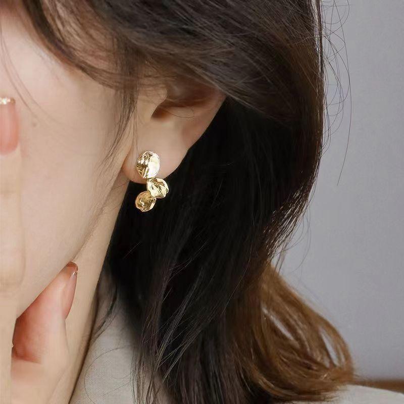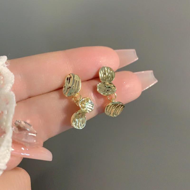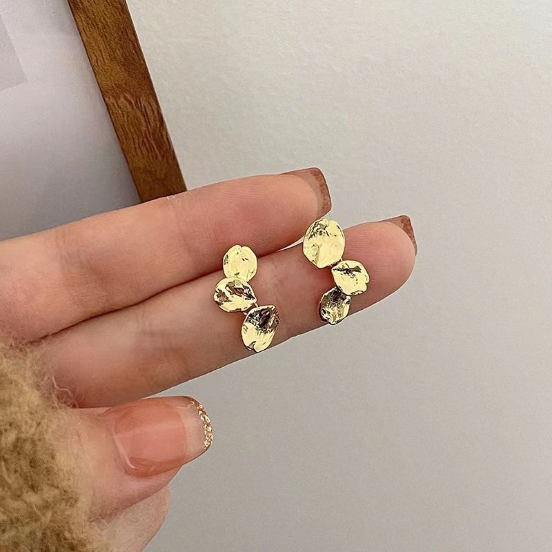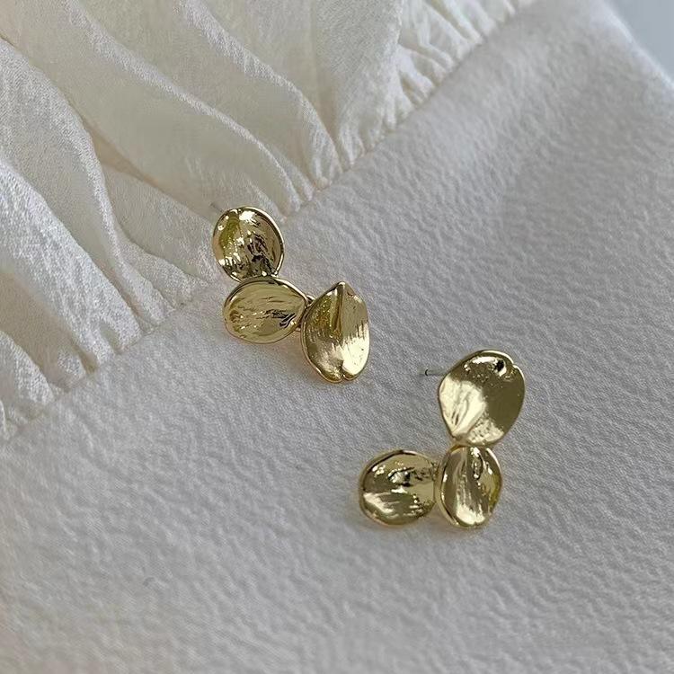 Design de nicho retro plissado dourado pequena folha de metal textura personalidade moda brincos brincos para mulheres