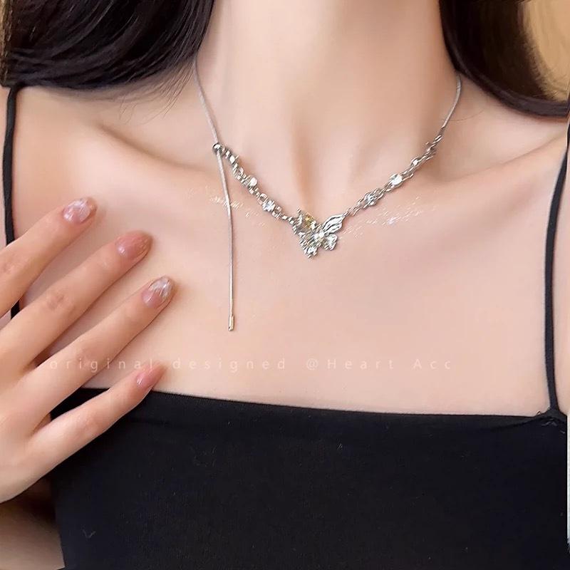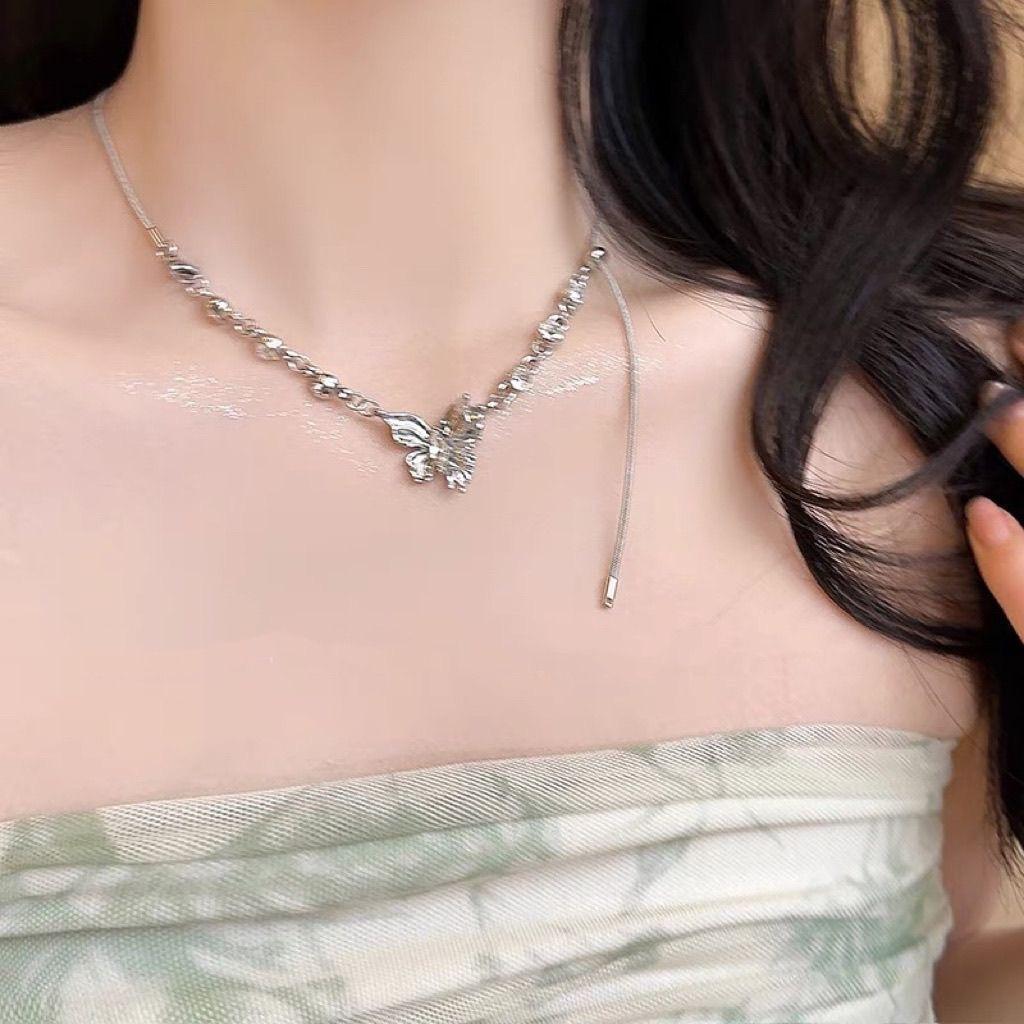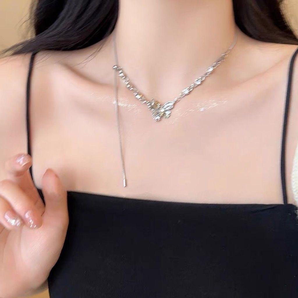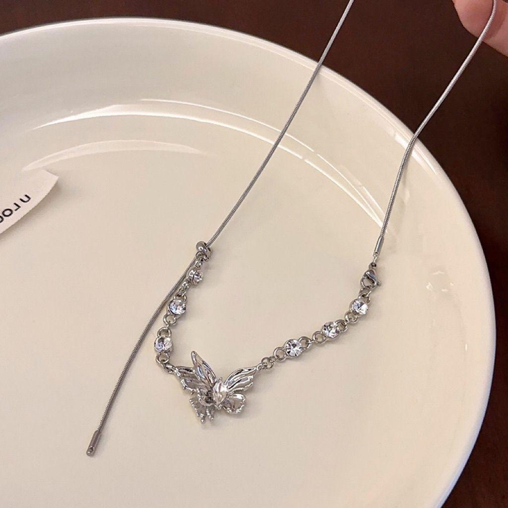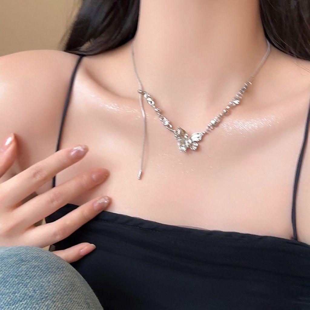 Colar de borla de zircão borboleta meninas verão 2024 novos acessórios populares Nicho de luxo leve Cadeia de clavícula de alta qualidade