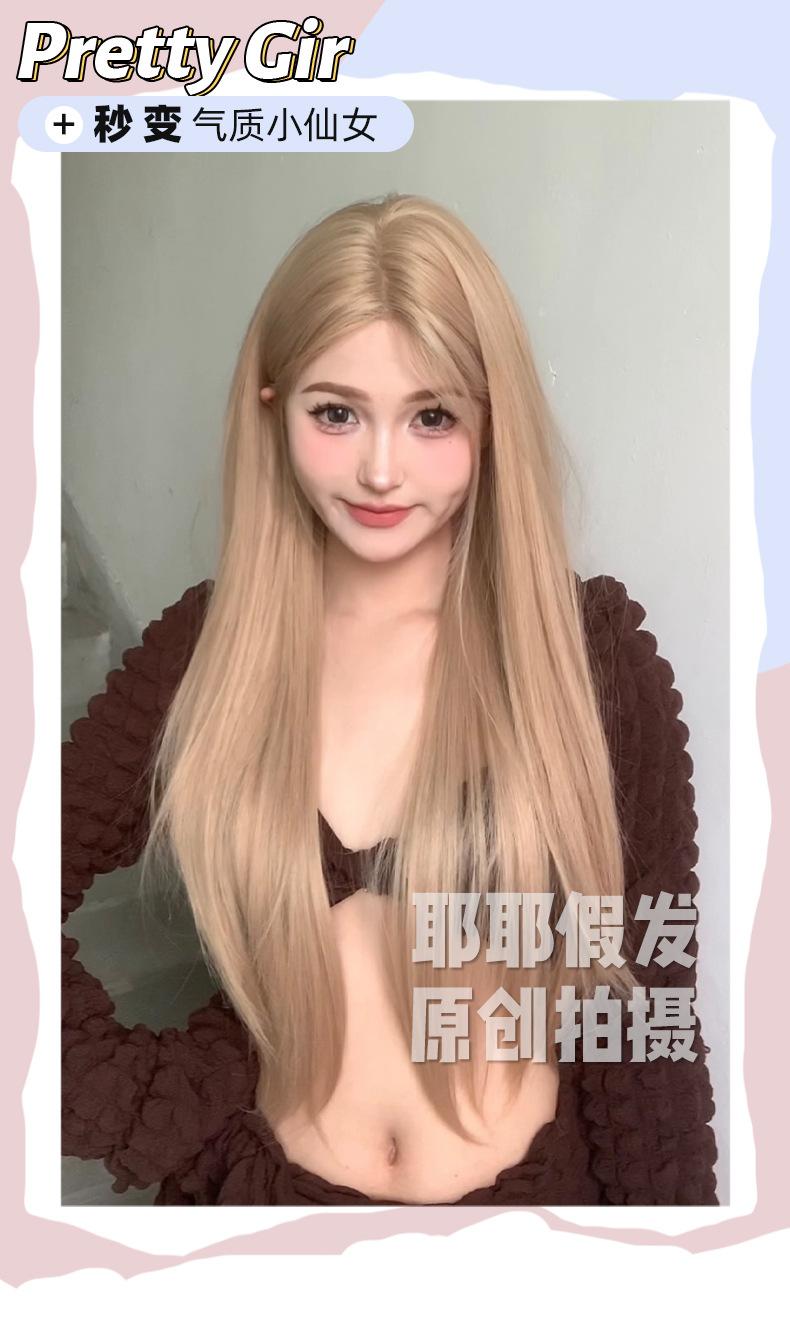 Peruca Yeye Verão Novo Estilo Uma Palavra Lace Cabelo Liso Longo Capa de Cabeça Cheia Capa de Peruca Natural
