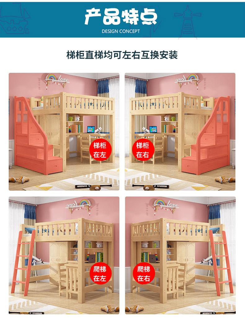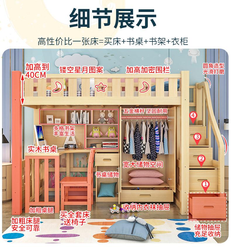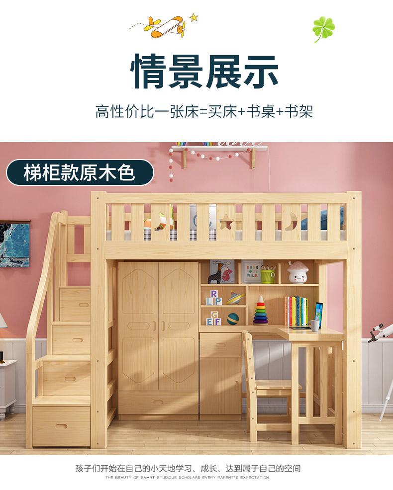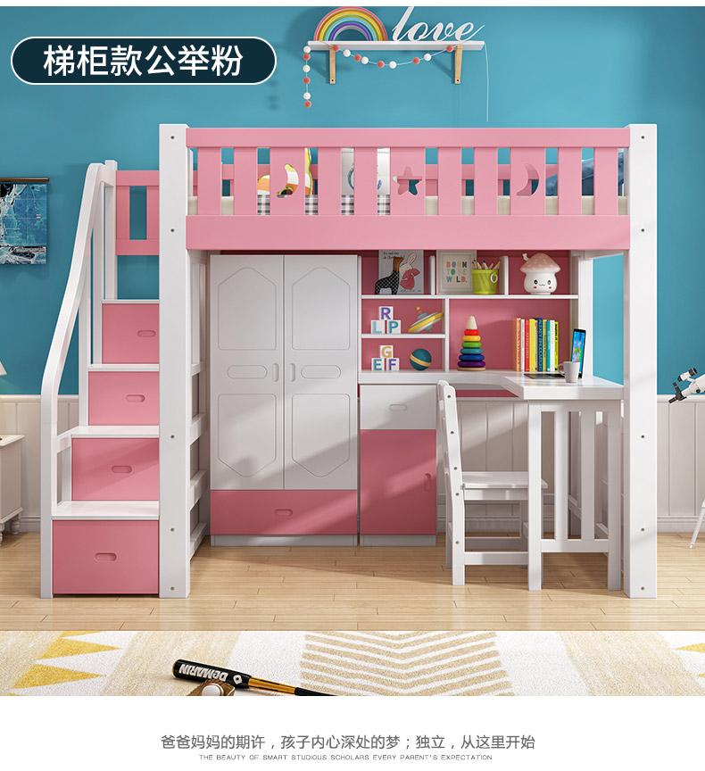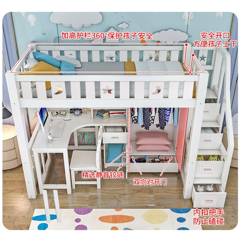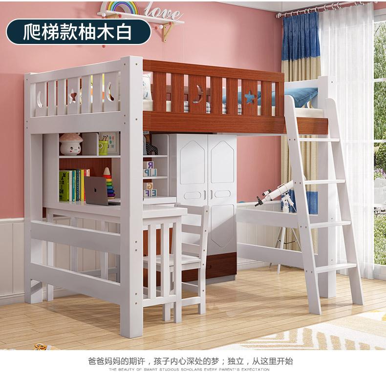 Compre Cama Combinada Multifuncional Alta e Baixa Cama Infantil de Camada Dupla Cama com Mesa de Estudo Integrada Guarda-Roupa para Aprendizagem no atacado no Joom.pro