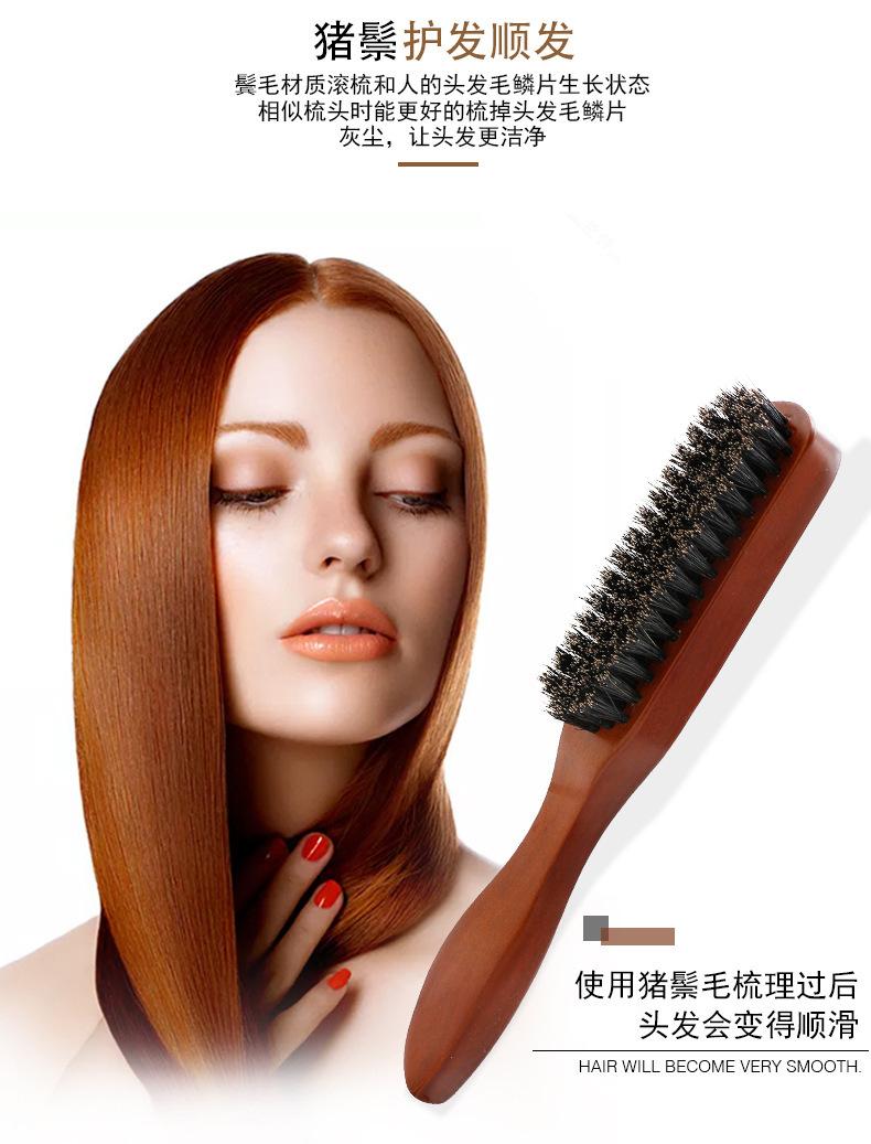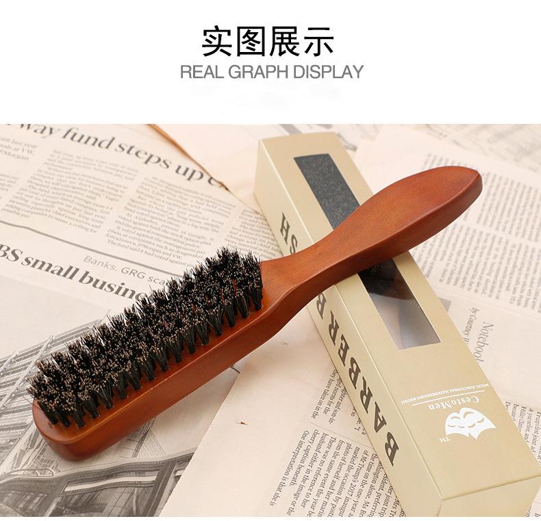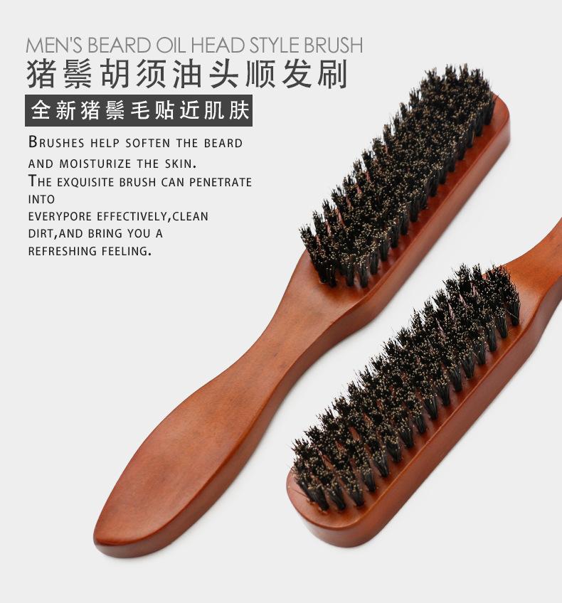 Escova Masculina Transfronteiriça para Cabelo com Óleo, Pente para Barba para Modelar e Pentear, Escova de Limpeza para Salão de Cabeleireiro, Varredor de Cabelos Quebrados, Madeira Maciça, Cerdas de Javali, Pente Suavizador de Cabelo