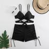 Biquíni de férias europeu e americano 2021 novo sexy acessórios de metal strass maiô feminino dividido cor sólida alça maiô