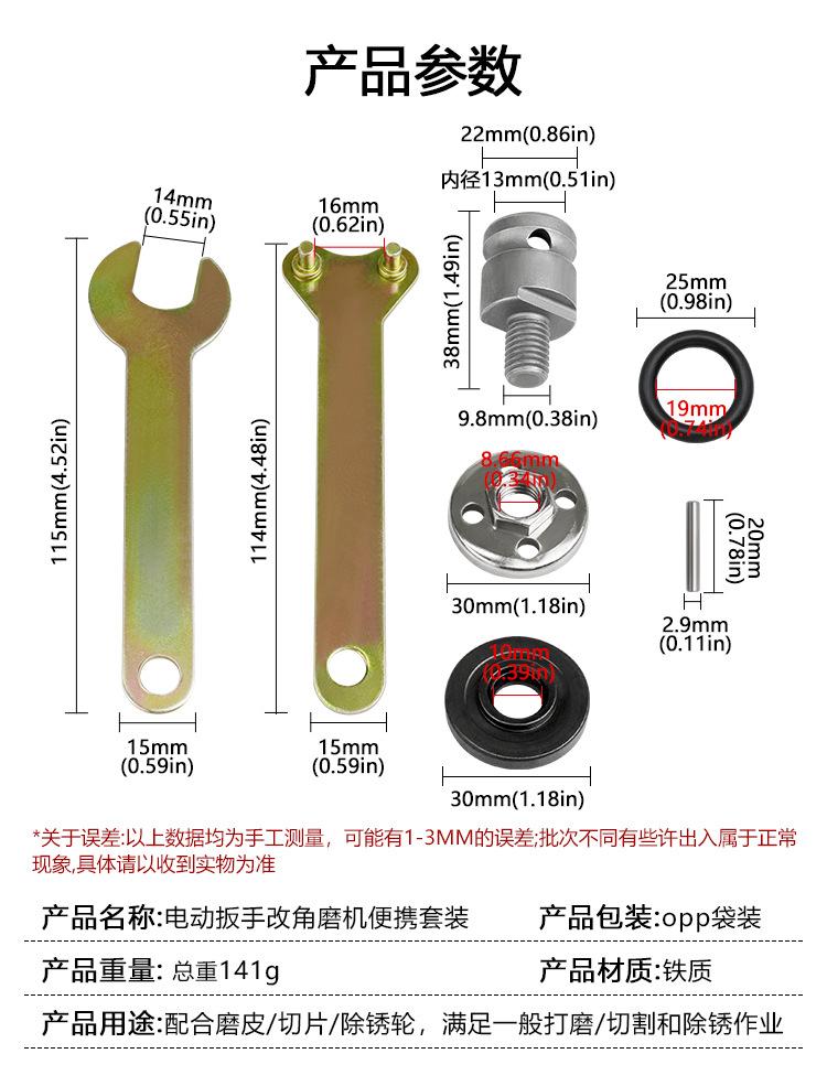 Chave elétrica para trocar ferramenta de rebarbadora portátil para trocar rebarbadora corte de polimento e acessórios de conversão de polimento