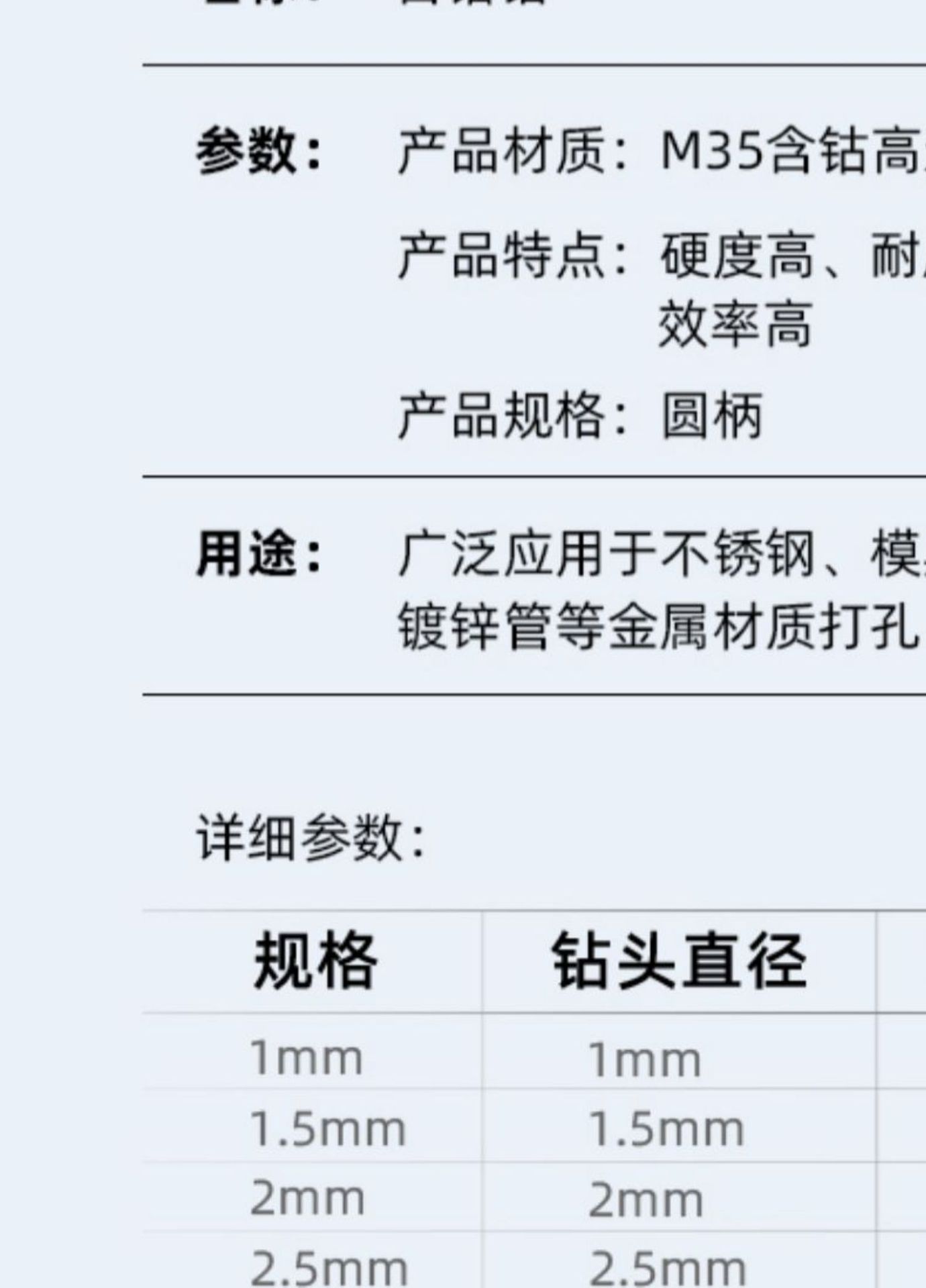 Broca helicoidal terno Aço inoxidável contendo cobalto Mão elétrica Broca Furo Broca Cabeça Super Metal Duro Ferro Liga de Alumínio Broca