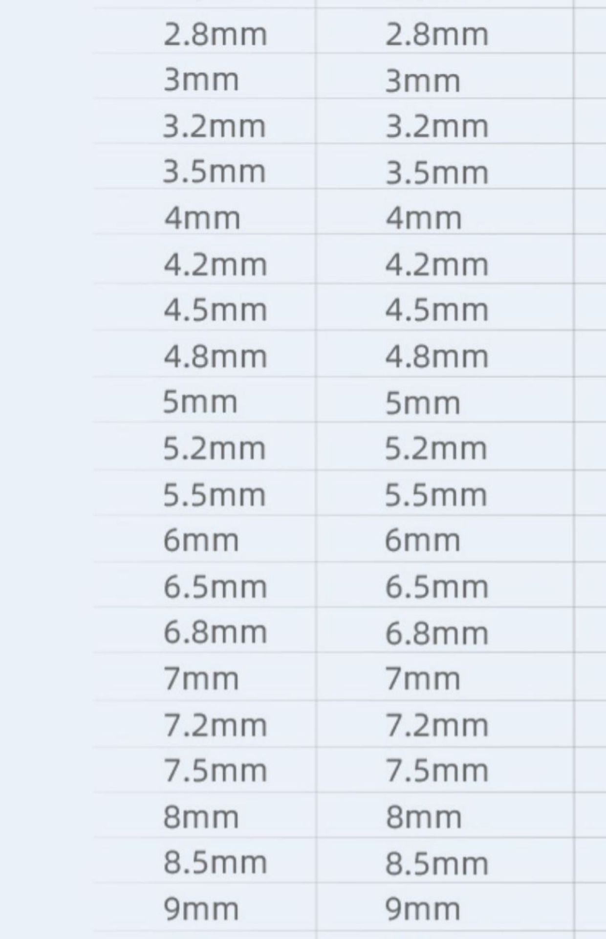 1MM [10]], 1.5MM [10]], 2.5MM [10]], 2.6MM [10]], 2.8MM [10]], 3MM [4]], 3.2MM [4]], 3.4MM [4]], 3.5MM [4]], 4...