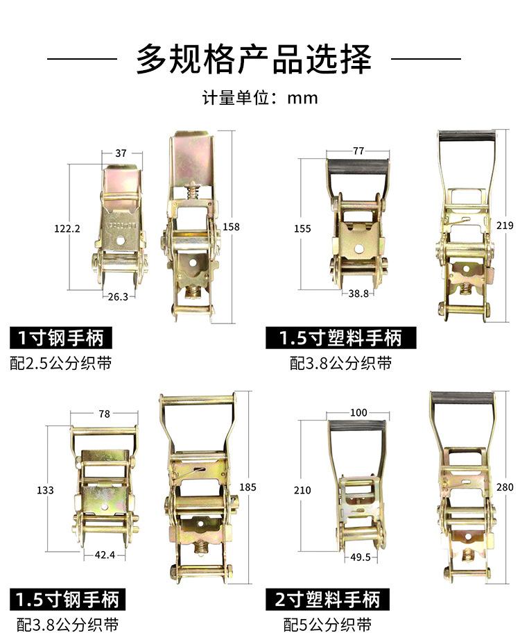 1 inch steel handle (with 2.5cm webbing), 1.5 inch plastic handle (with 3.8cm webbing), 1.5 inch steel handle ...