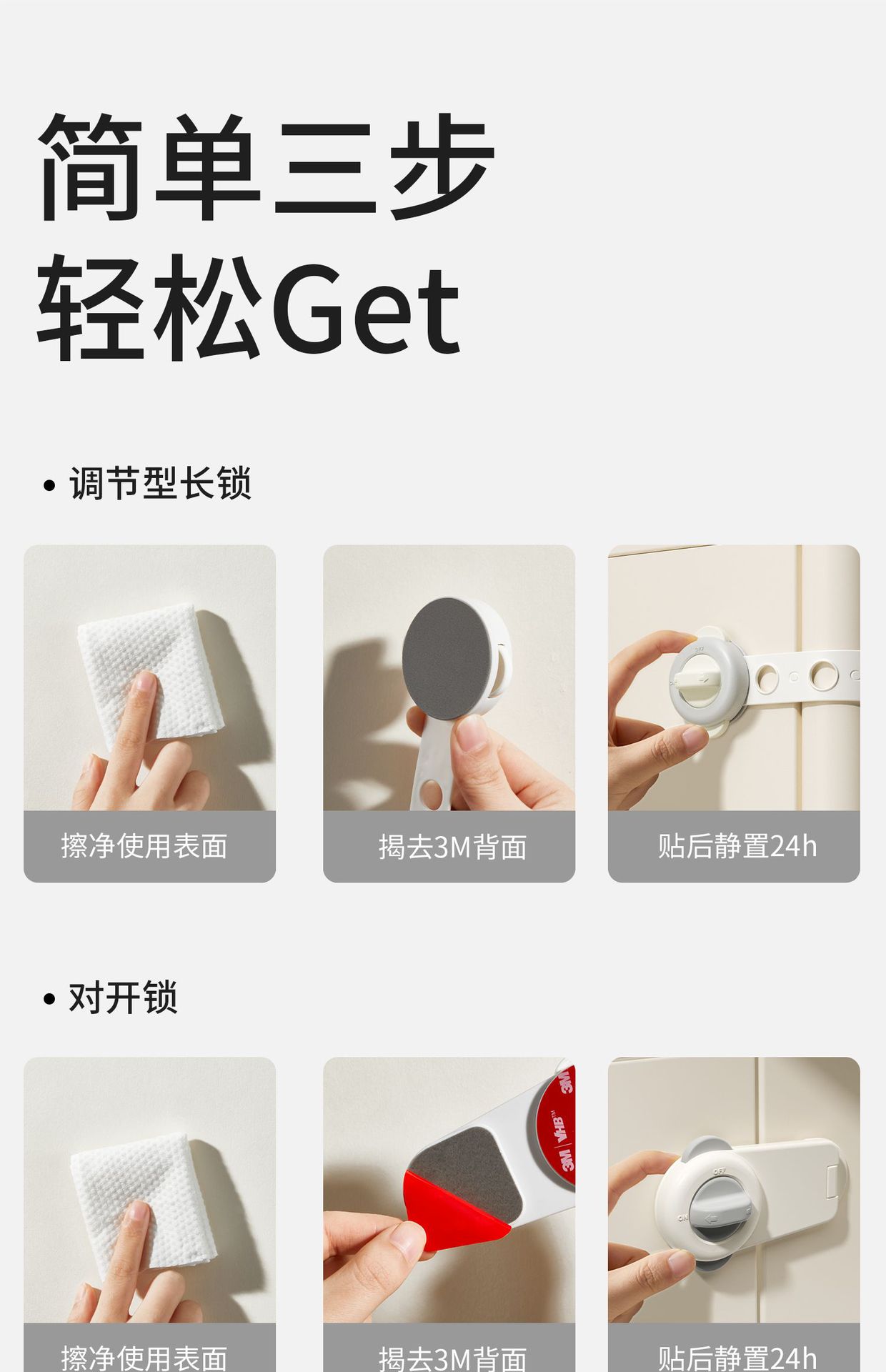 ⬇️⬇[Long lock/applicable corner cabinet, drawer]]⬇️⬇️, Water light gray [6 long lock/adjustable] 3M seamless a...