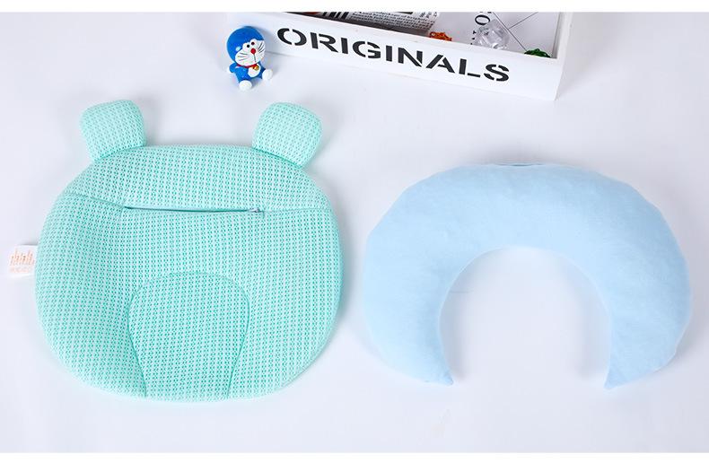 Travesseiro de bebê produtos para recém-nascidos 0-1 anos de idade anti-deflexão cabeça látex em forma de travesseiro cor algodão travesseiro atacado