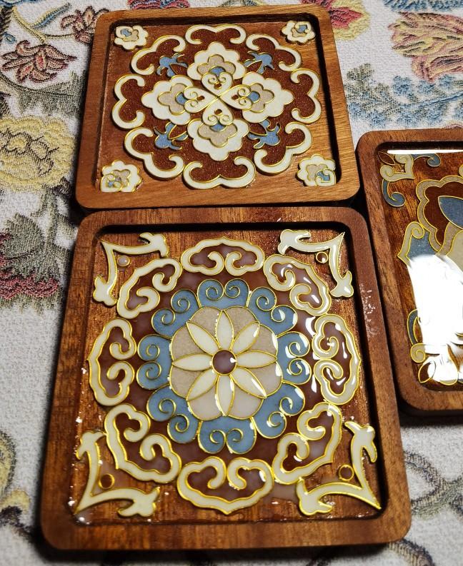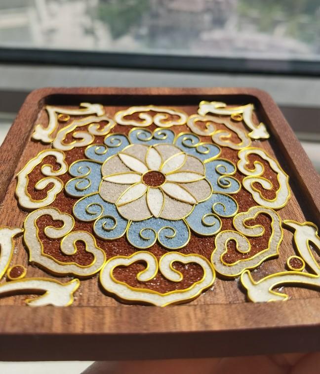 Porta-copos quadrado de algas de Dunhuang Ébano 8,8cm Kit DIY esmalte cloisonné material cloisonné