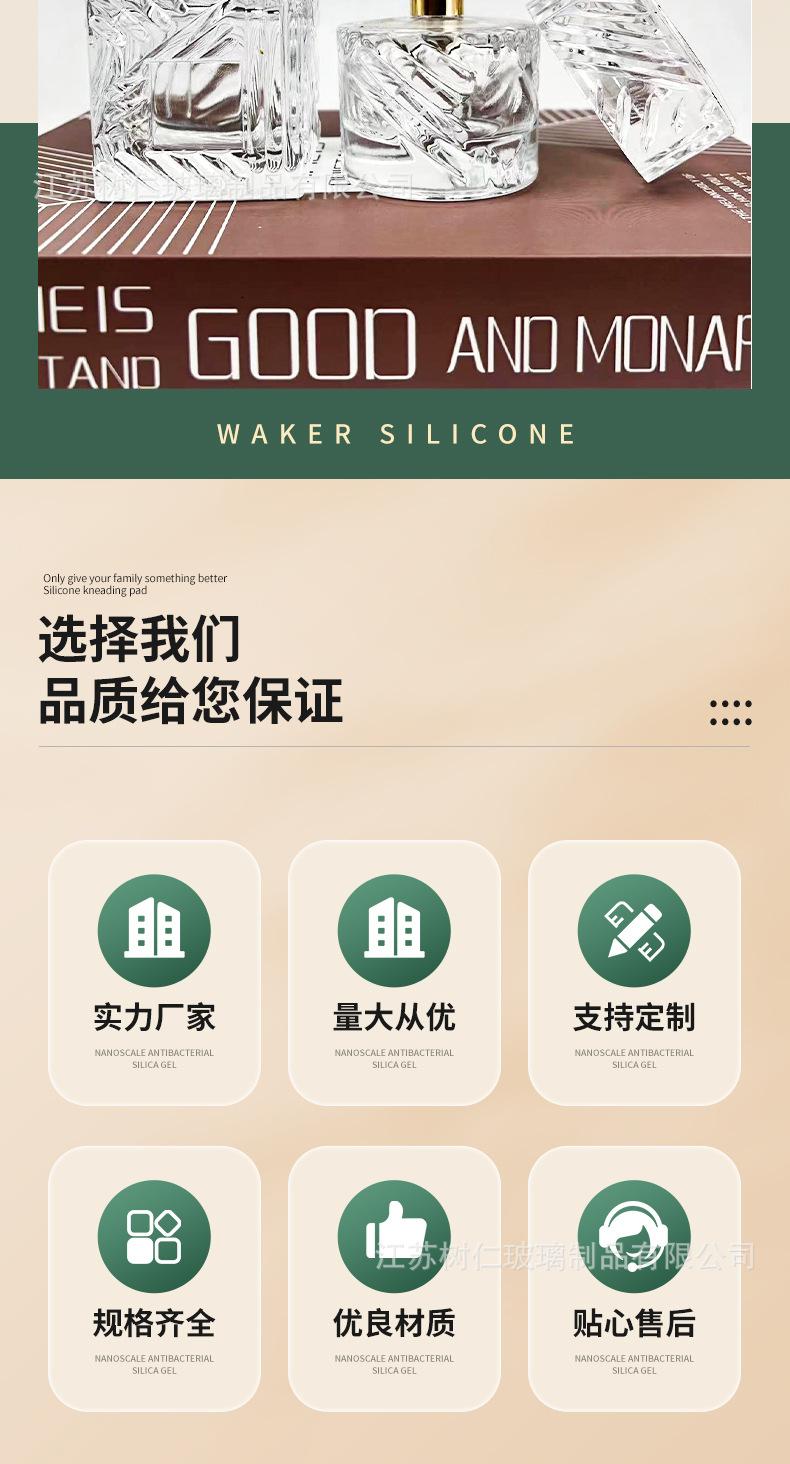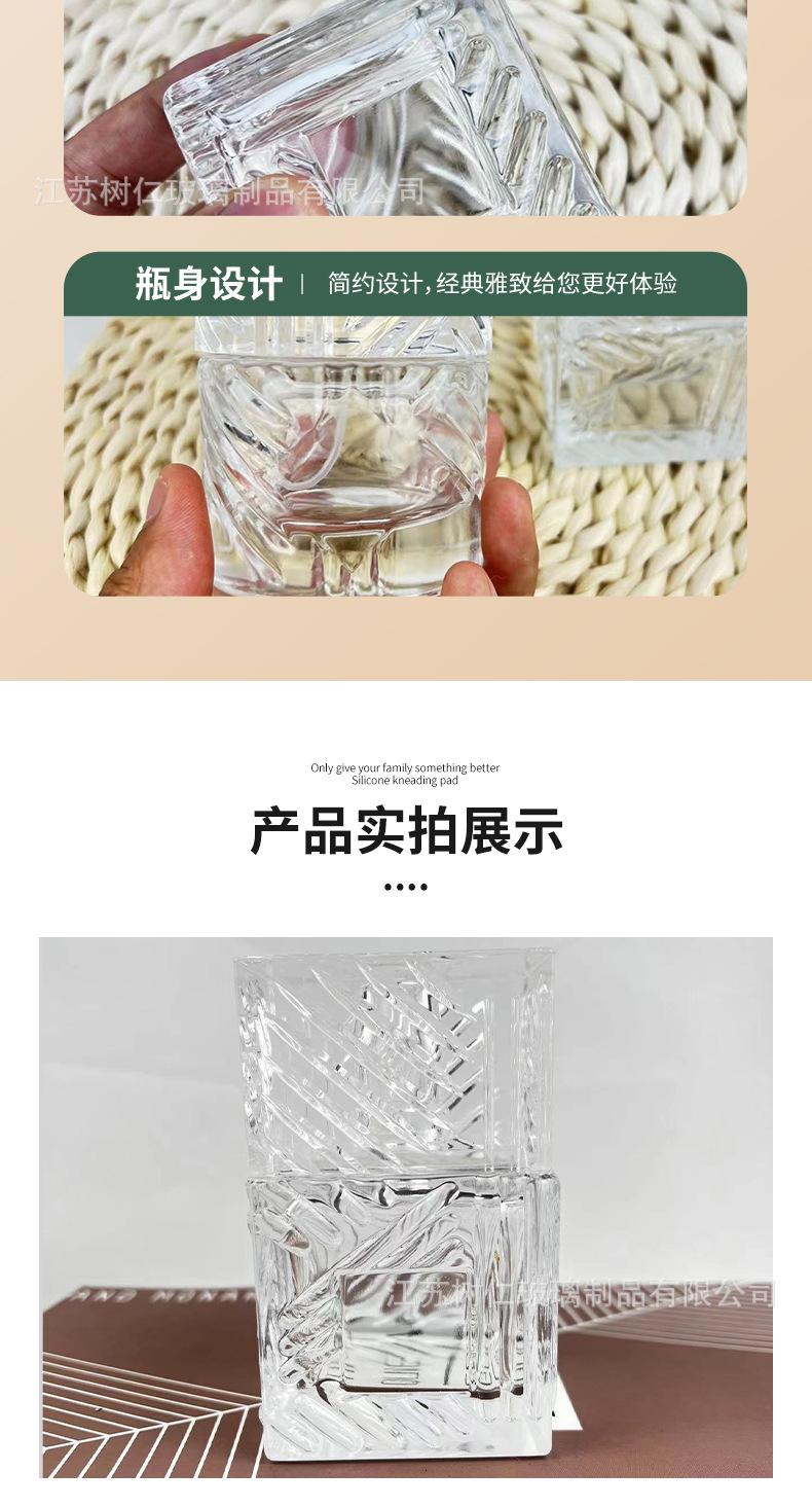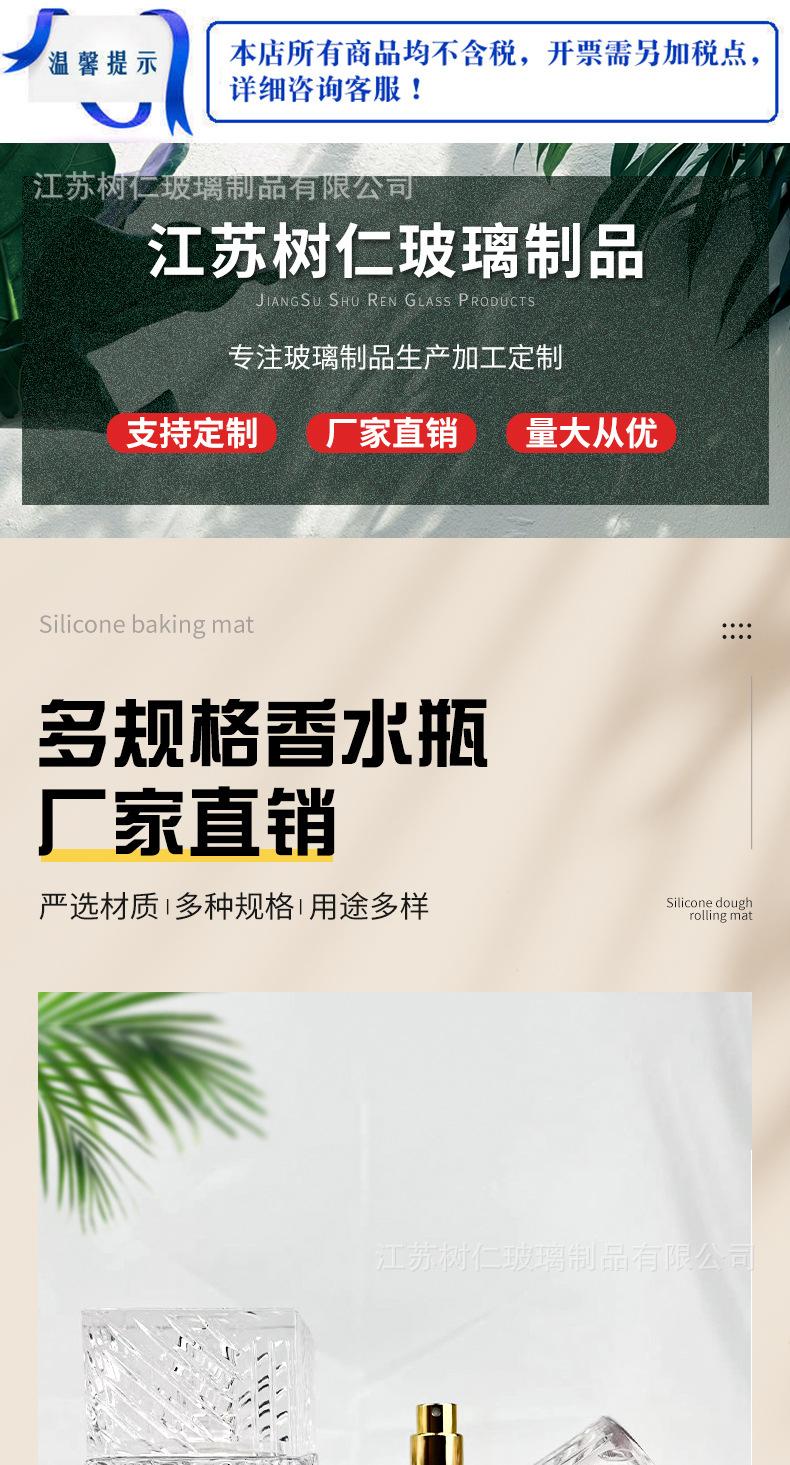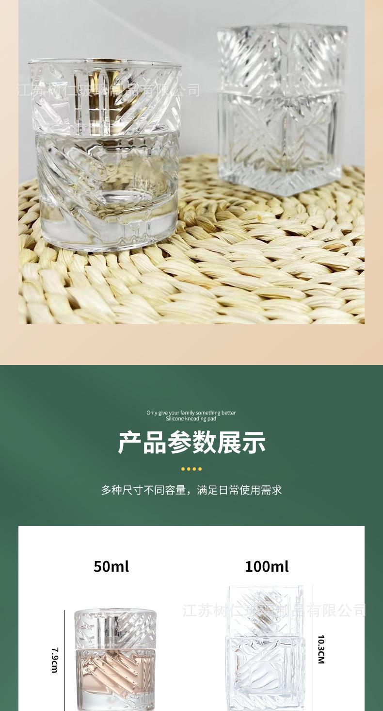 50ml round bottle; transparent; glass, 100ml square bottle; transparent; glass