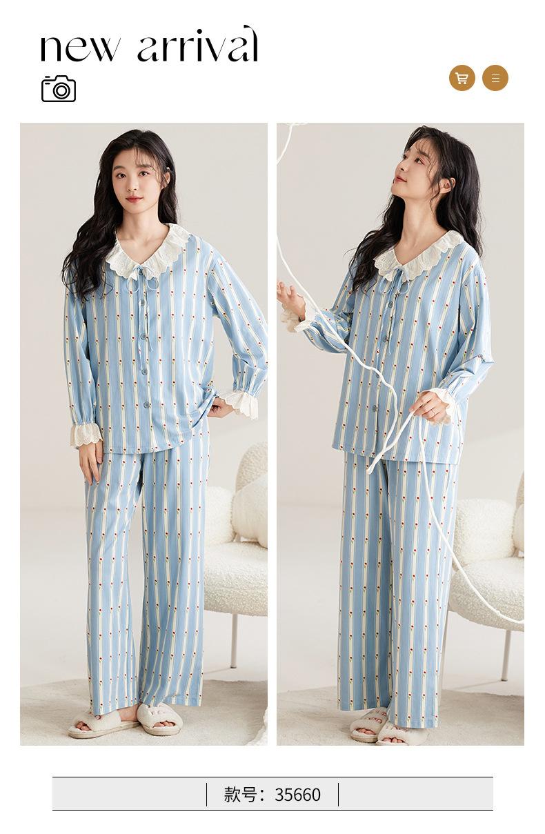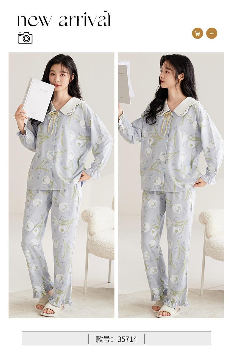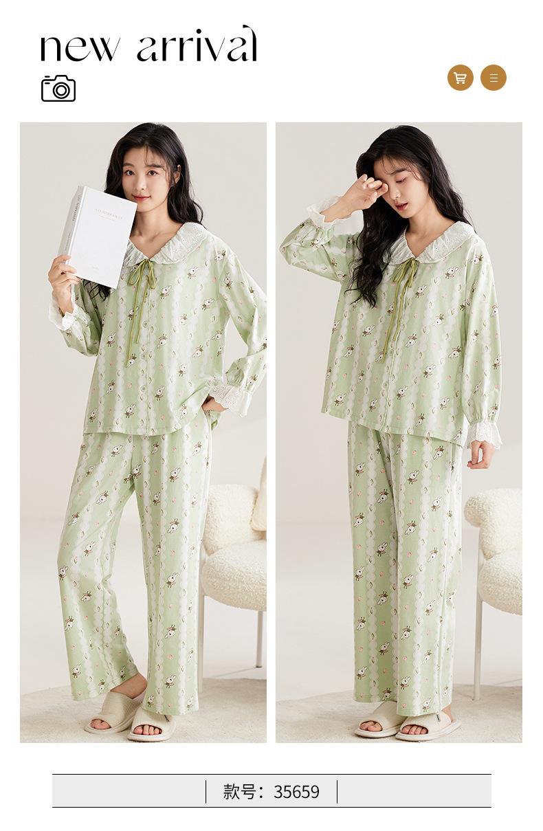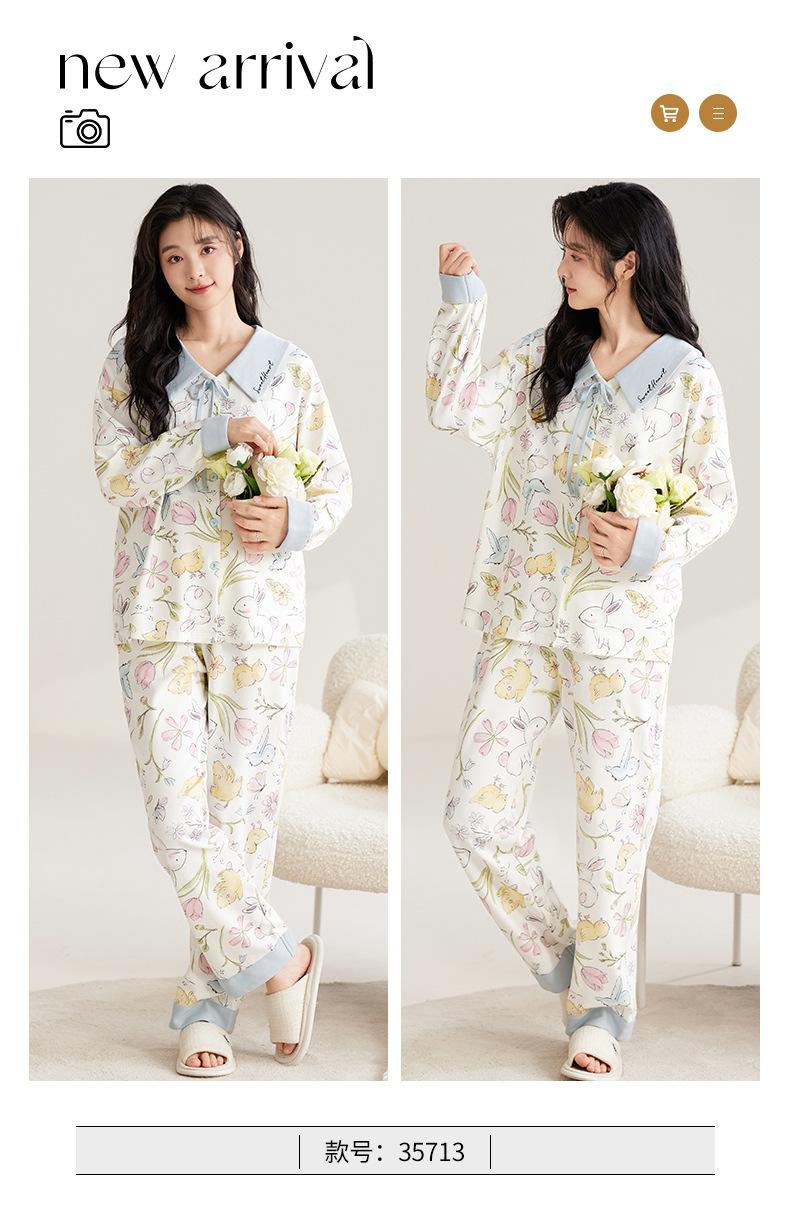 Compre Pijamas Primavera e Outono Feminino Nova Calças de Manga Comprida Doce Bonito Dos Desenhos Animados Boneca Collar Home Roupas Casuais Terno De Duas Peças no atacado no Joom.pro
