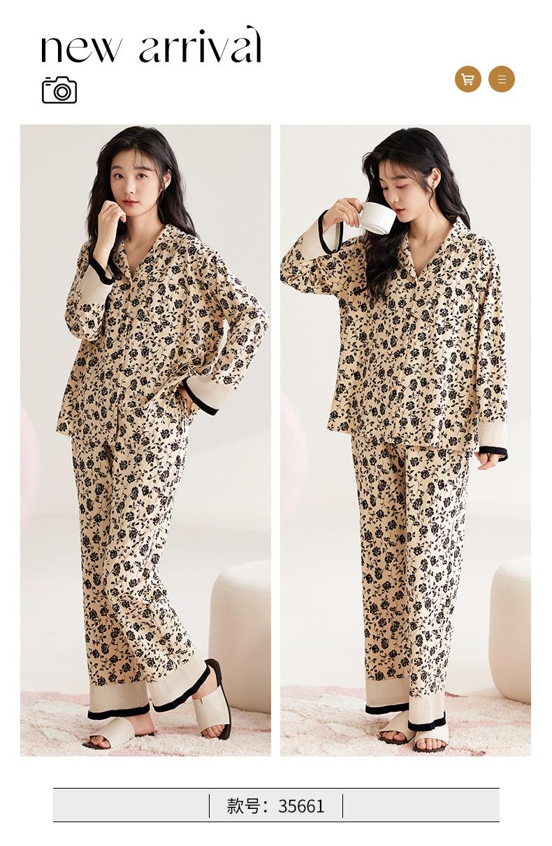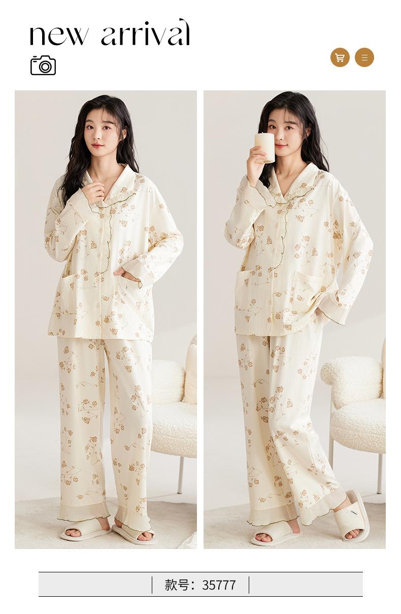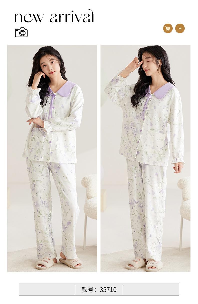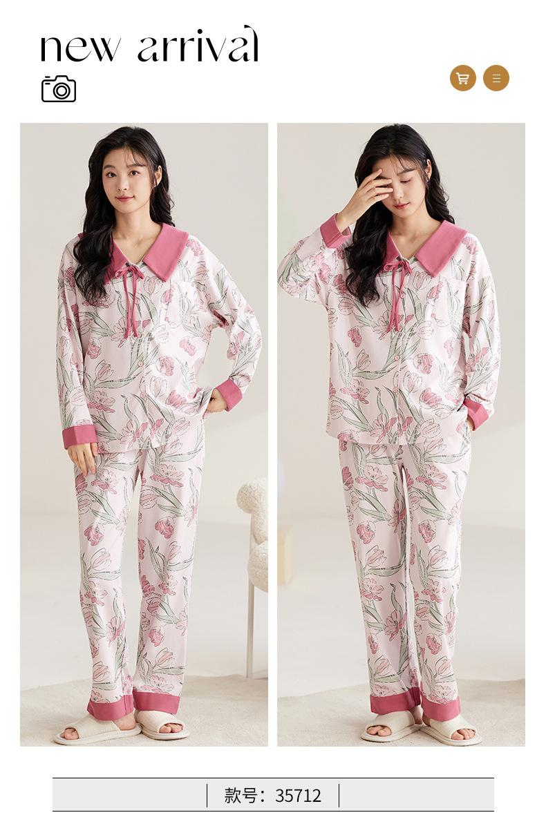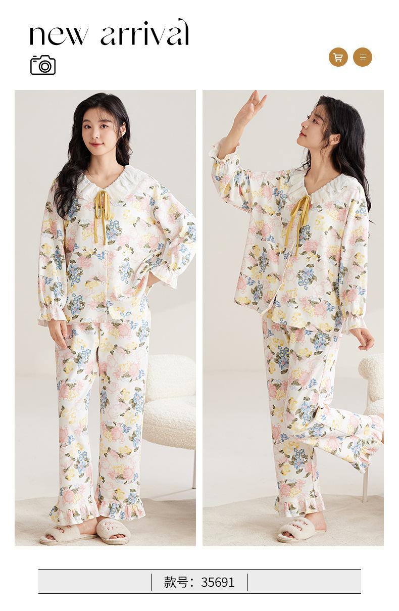 Compre Pijamas Primavera e Outono Feminino Nova Calças de Manga Comprida Doce Bonito Dos Desenhos Animados Boneca Collar Home Roupas Casuais Terno De Duas Peças no atacado no Joom.pro
