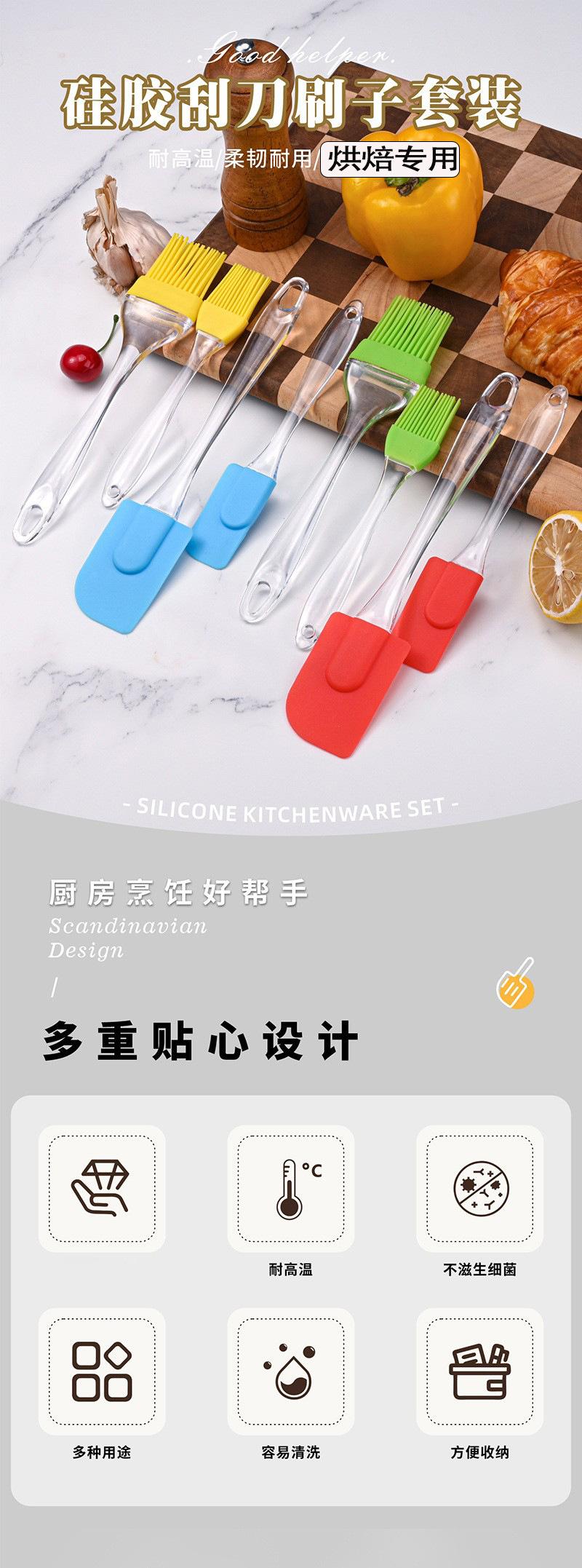 Popular Espátula de Silicone Transfronteiriça Conjunto de Espátulas para Creme de Bolo Espátula de Silicone Integrada para Cozinha Doméstica para Assar Pincel de Óleo para Churrasco