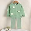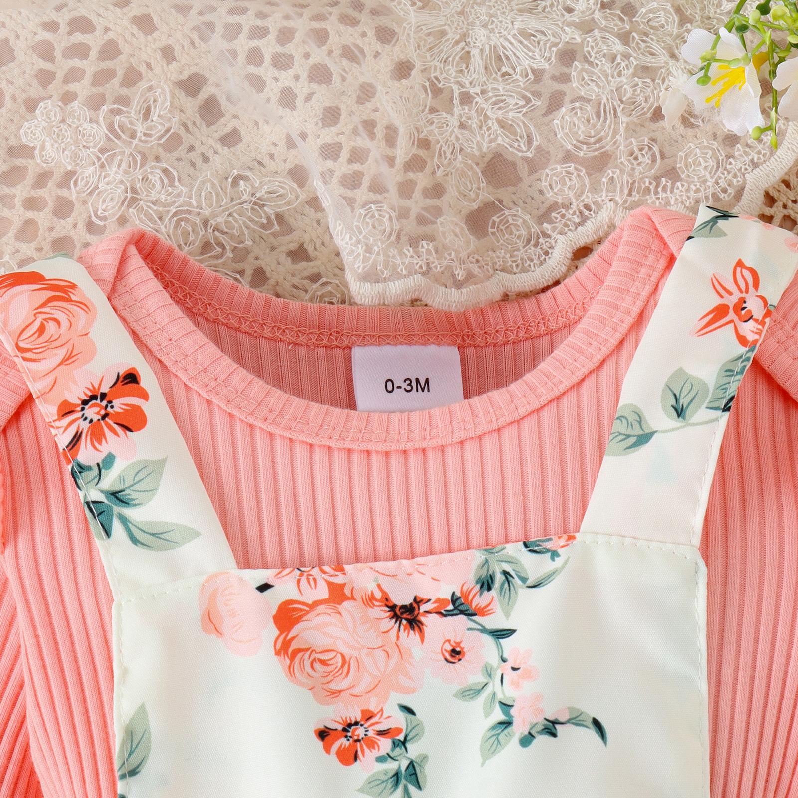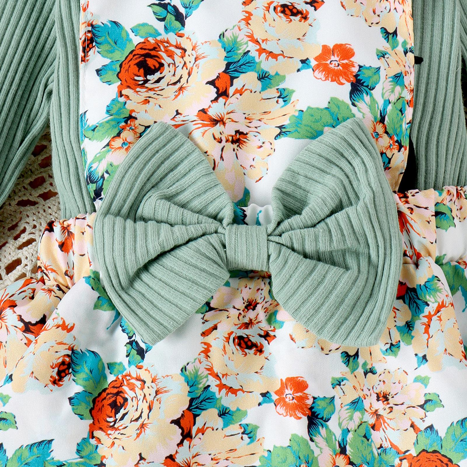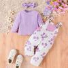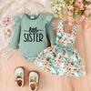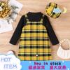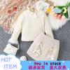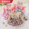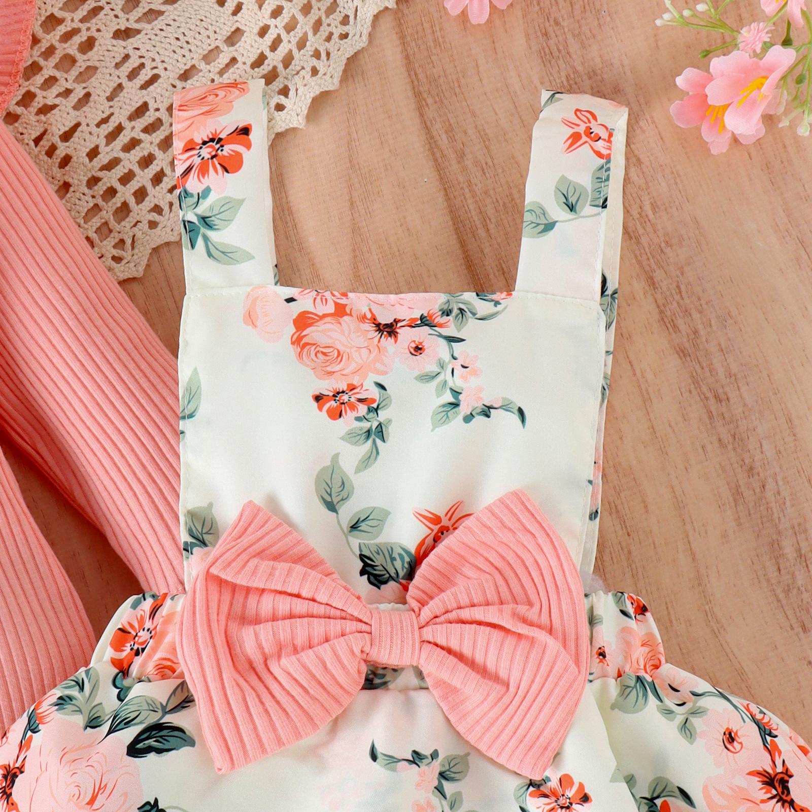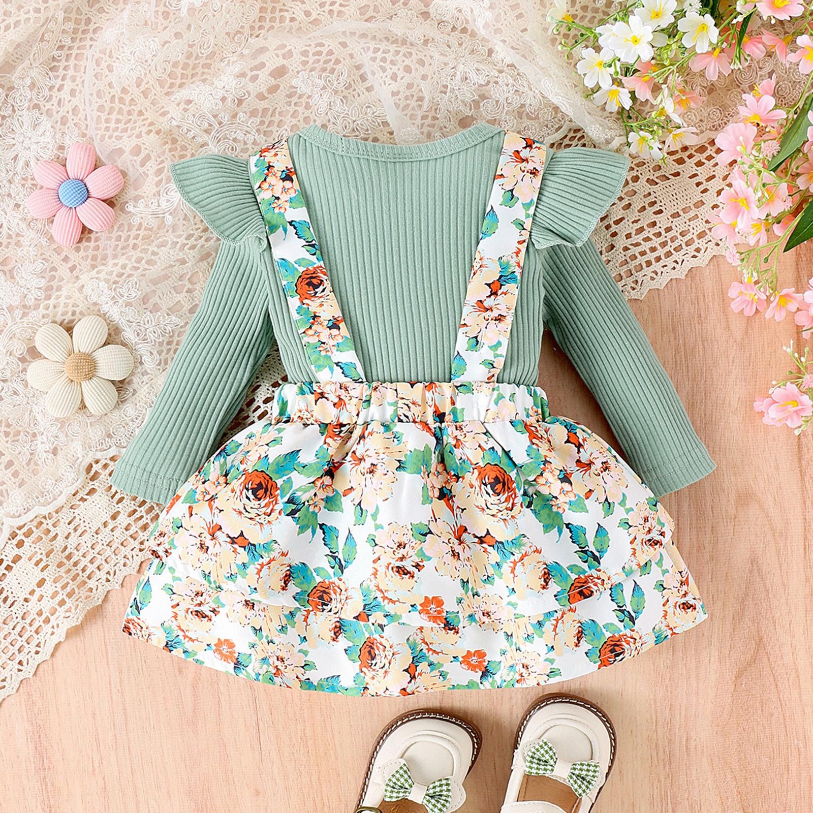 Conjunto Infantil Europeu e Americano de Outono e Inverno da Amazon Top de Manga Comprida Cor Pura Saia Suspender com Laço Estampado Conjunto de Duas Peças