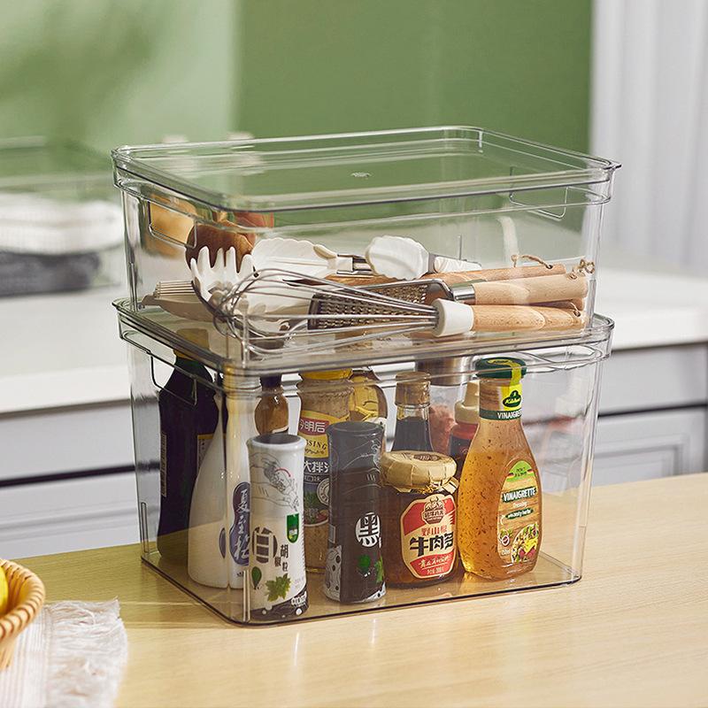 Caixa de armazenamento de plástico portátil, grande, transparente, para temperos, utensílios de cozinha, caixa de armazenamento para geladeira de cozinha