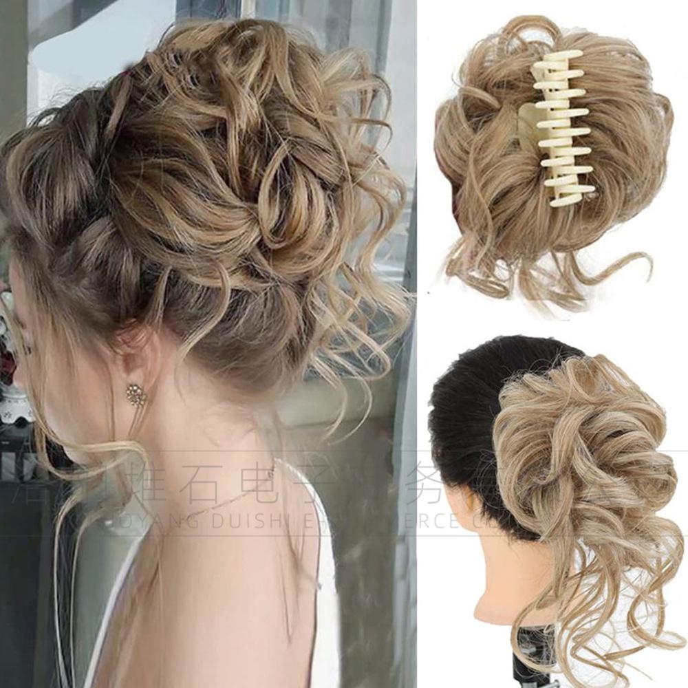 Peruca feminina peruca cabeça de bola grande aperto longo barba bagunçado anel de cabelo encaracolado coque feminino Bolsa de cabelo encaracolado