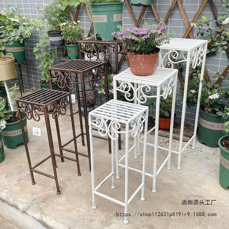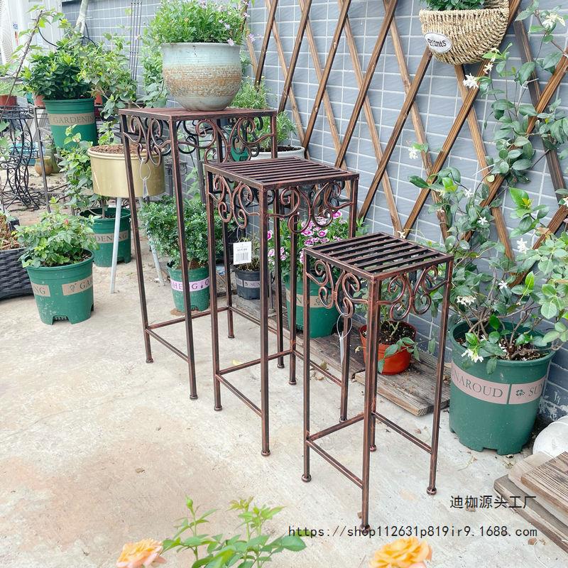 Rack de vaso de flores estilo americano Banqueta de flores de ferro retrô Pátio ao ar livre Varanda Escada hierárquica Vaso de plantas Decorativo Suporte de flores Suporte de flores