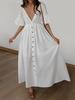 Algodão francês e linho profundo decote em V manga chifre cintura alta Um vestido de pêndulo 2024 Moda de outono europeia e americana novo vestido feminino