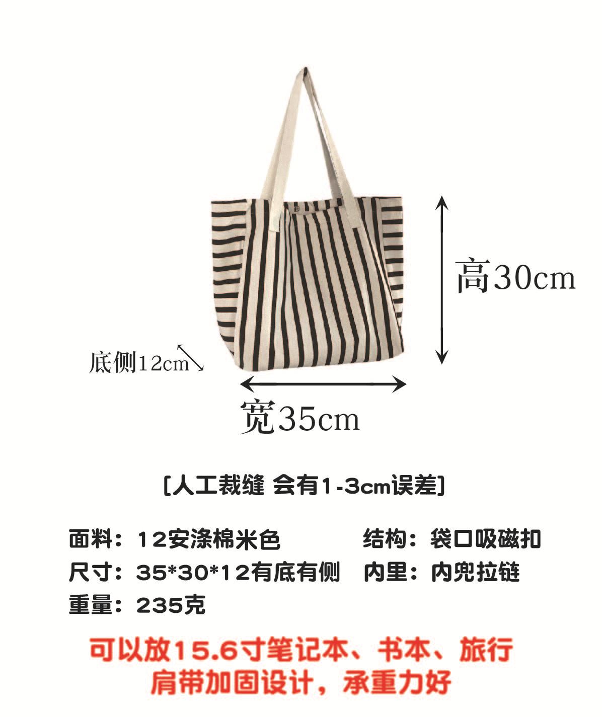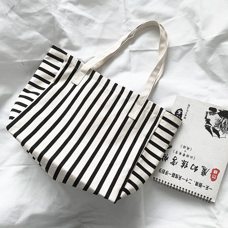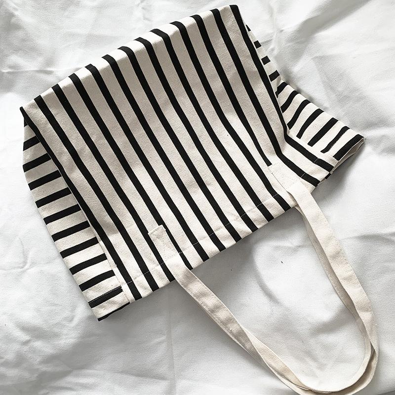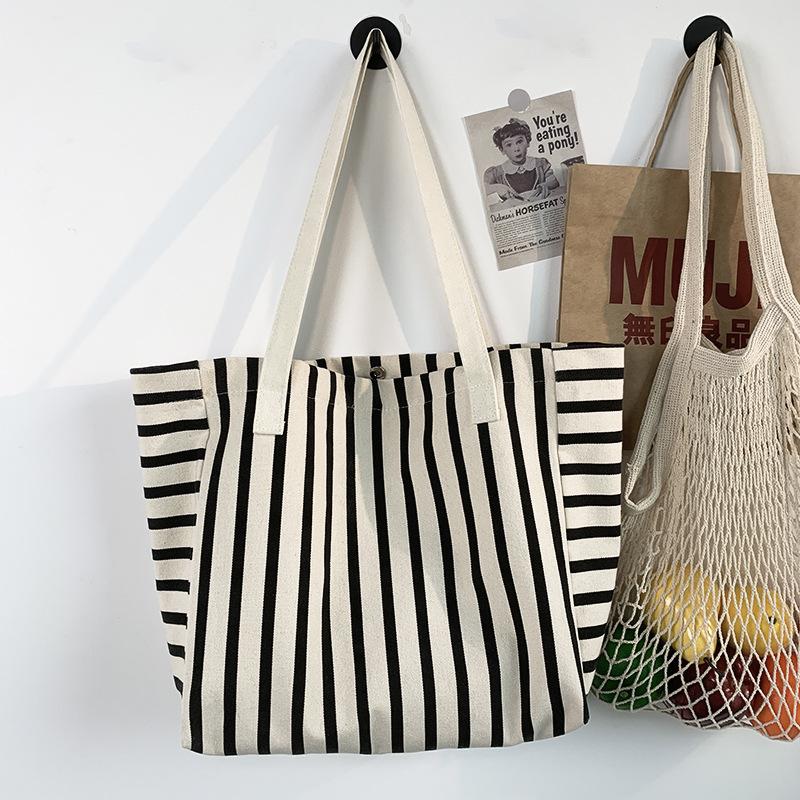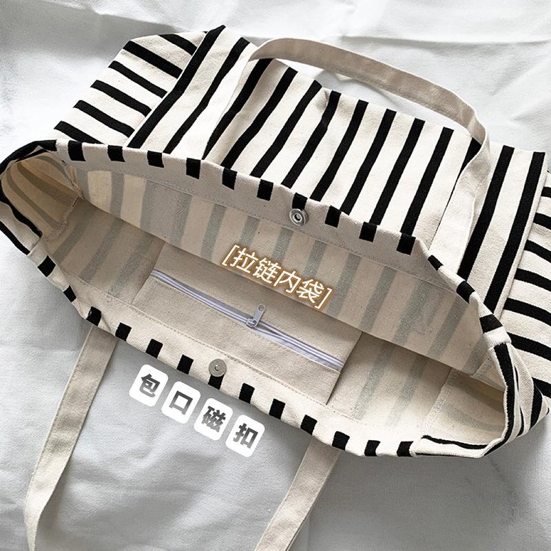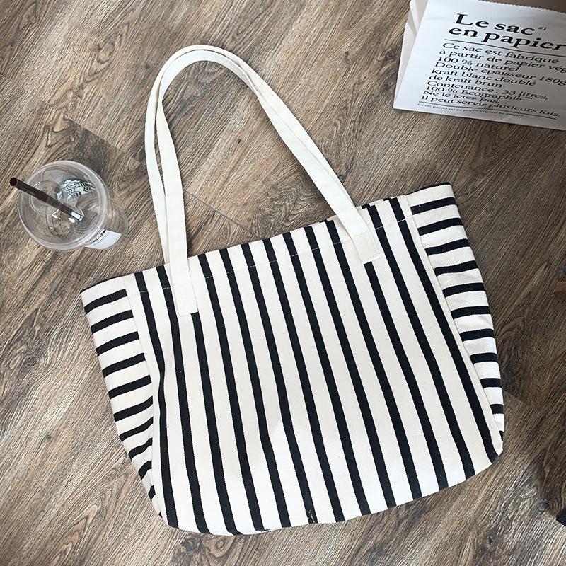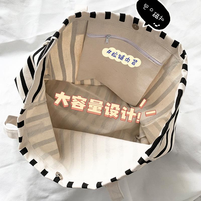 Nova Bolsa de Lona Listrada Bolsa de Ombro Feminina Grande Capacidade Bolsa Escolar para Estudantes Ins Japonês e Coreano Bolsa de Compras Sacola