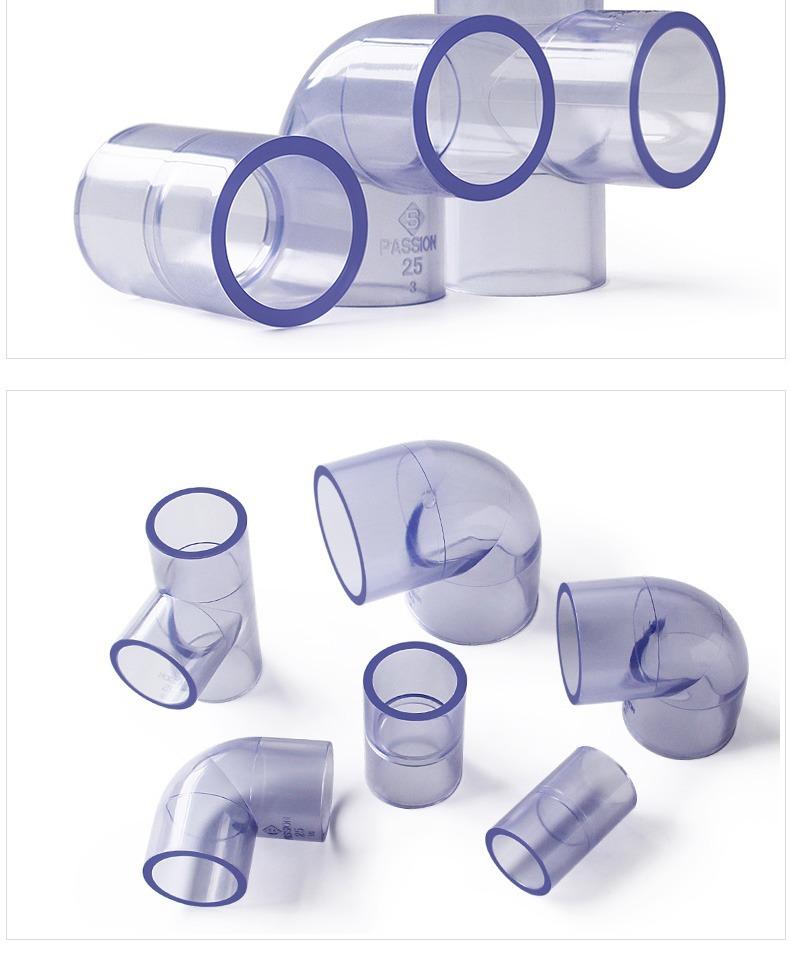 Tubo de PVC transparente cotovelo junta em T 90 graus reto através de plástico transparente tubo rígido acessórios para tubos de água fornecimento direto de água tubo