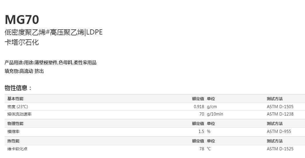 LDPE Qatar MG70 MG40 LDPE de alto fluxo Qatar MG70 Polietileno de baixa densidade de alta pressão