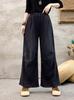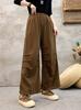 Calças de Moletom Plissadas para Mulheres, Novo Estilo Primavera e Outono, Bloco de Cores Artístico Vintage, Calças Casuais Soltas e Versáteis de Perna Larga com Caimento 8108