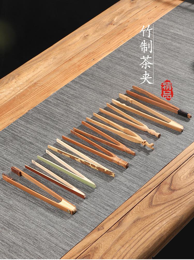 Clipe de chá de bambu artesanal antiderrapante Chinês retro bambu pinças multiuso Clipe de copo kung fu jogo de chá peças da cerimônia do chá