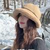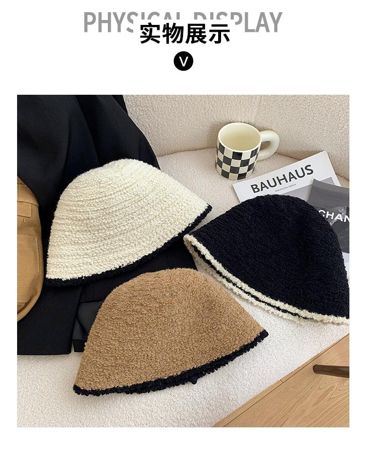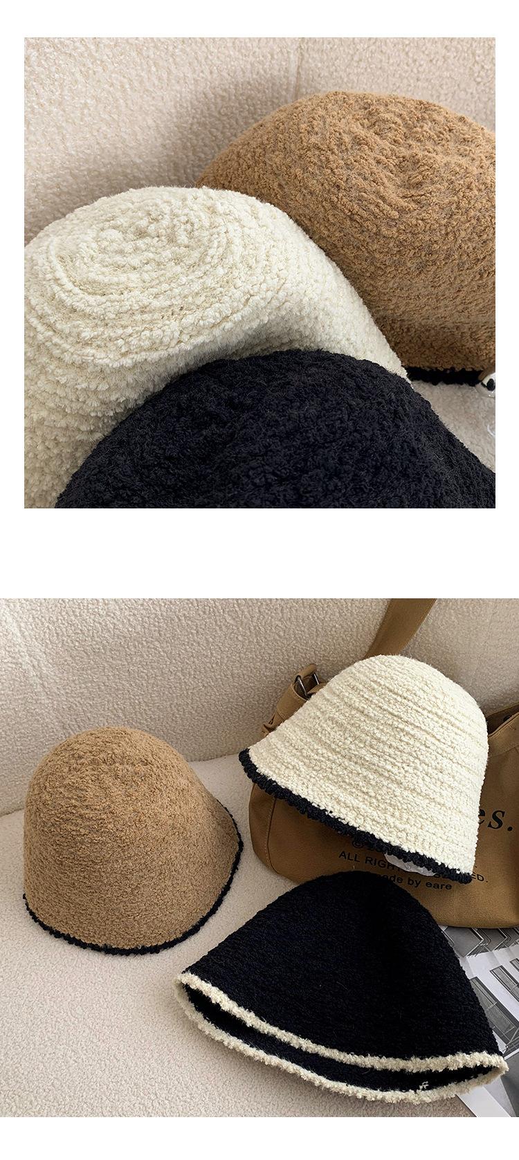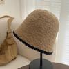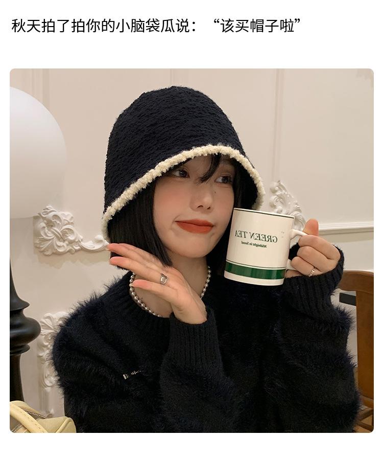 Chapéu de pescador de pelúcia de malha preta para mulheres outono e inverno 2022 novo chapéu de balde de perímetro de cabeça grande estilo japonês chapéu pequeno com aparência de rosto