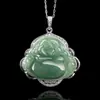 Natural Burma um Óleo de Jade Verde Buda Maitreya Buda Pingente 925 Conjunto de Prata Colar Pingente de Jade de Gelo para Mulheres