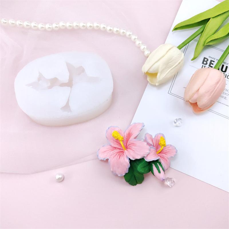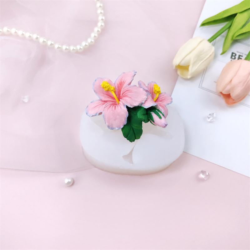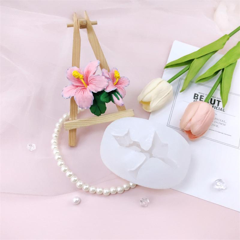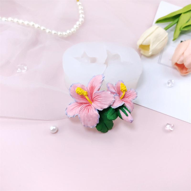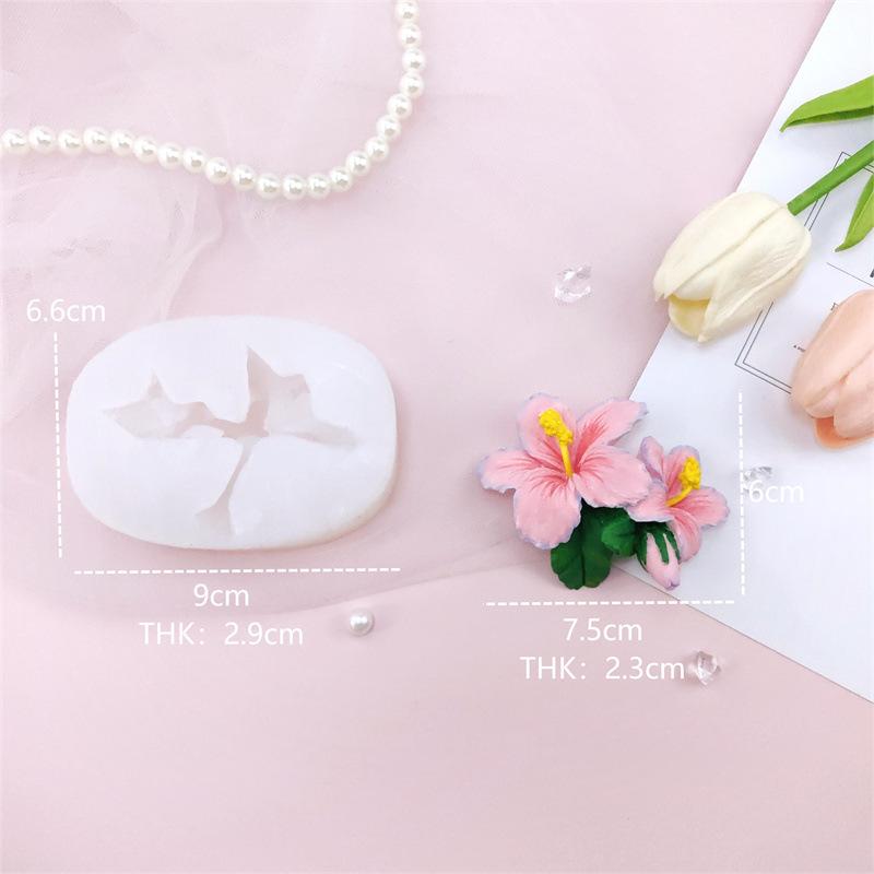 nome:Molde de silicone de flor de hibisco criativo feito à mão, cola por gotejamento, aromaterapia, gesso, ornamentos decorativos, molde para bolo, assar