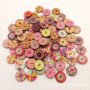 Nome do produto: Botões redondos de madeira impressos retrô Especificações: 15/20/25 mm 100 peças por pacote