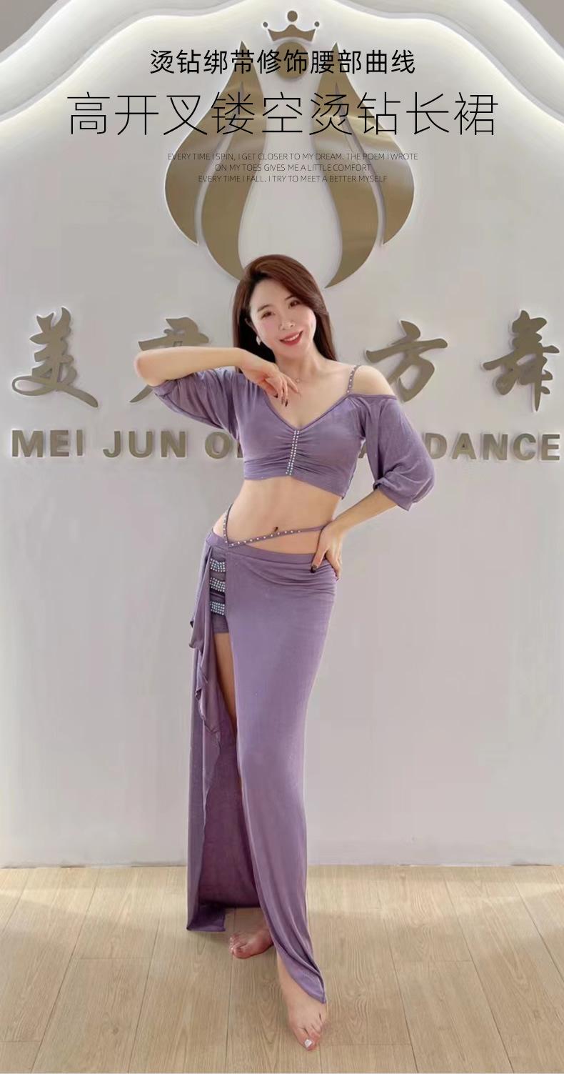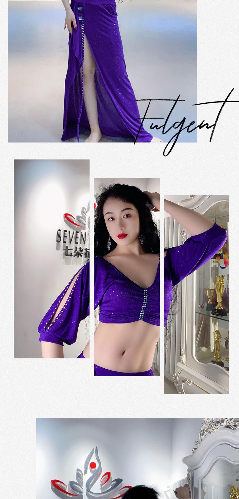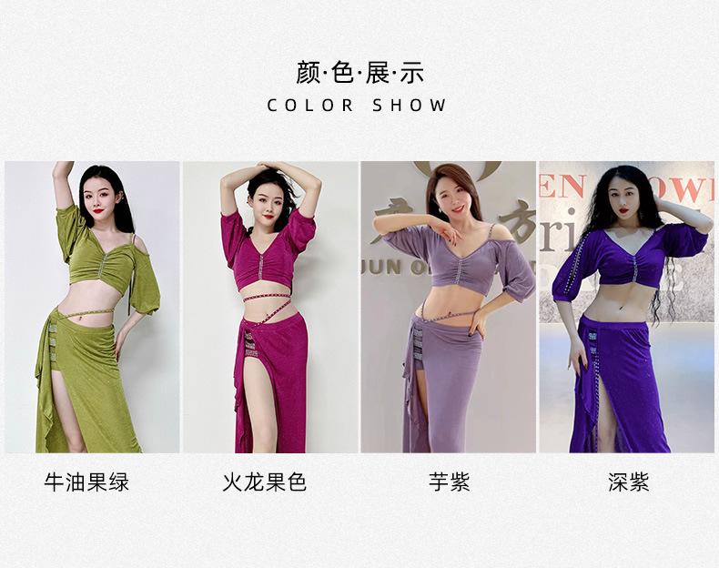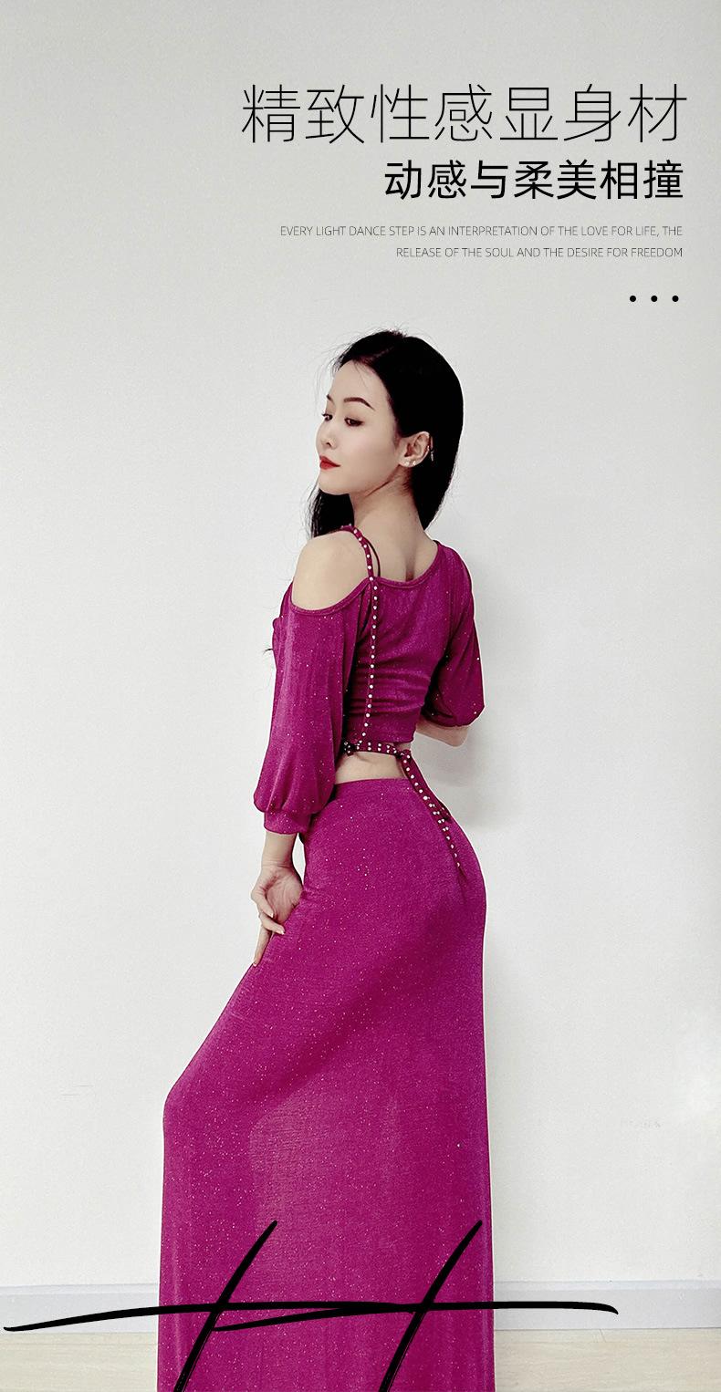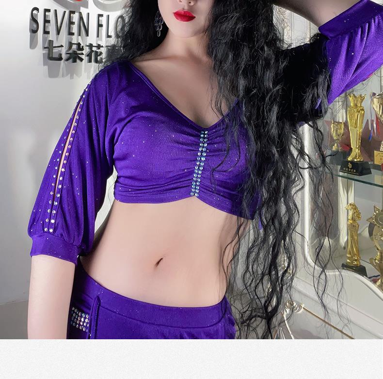 Compre Roupa de prática de dança do ventre leve e luxuosa para dança do ventre, traje para dança oriental, temperamento de dança, manga média, iniciante 5060 no atacado no Joom.pro