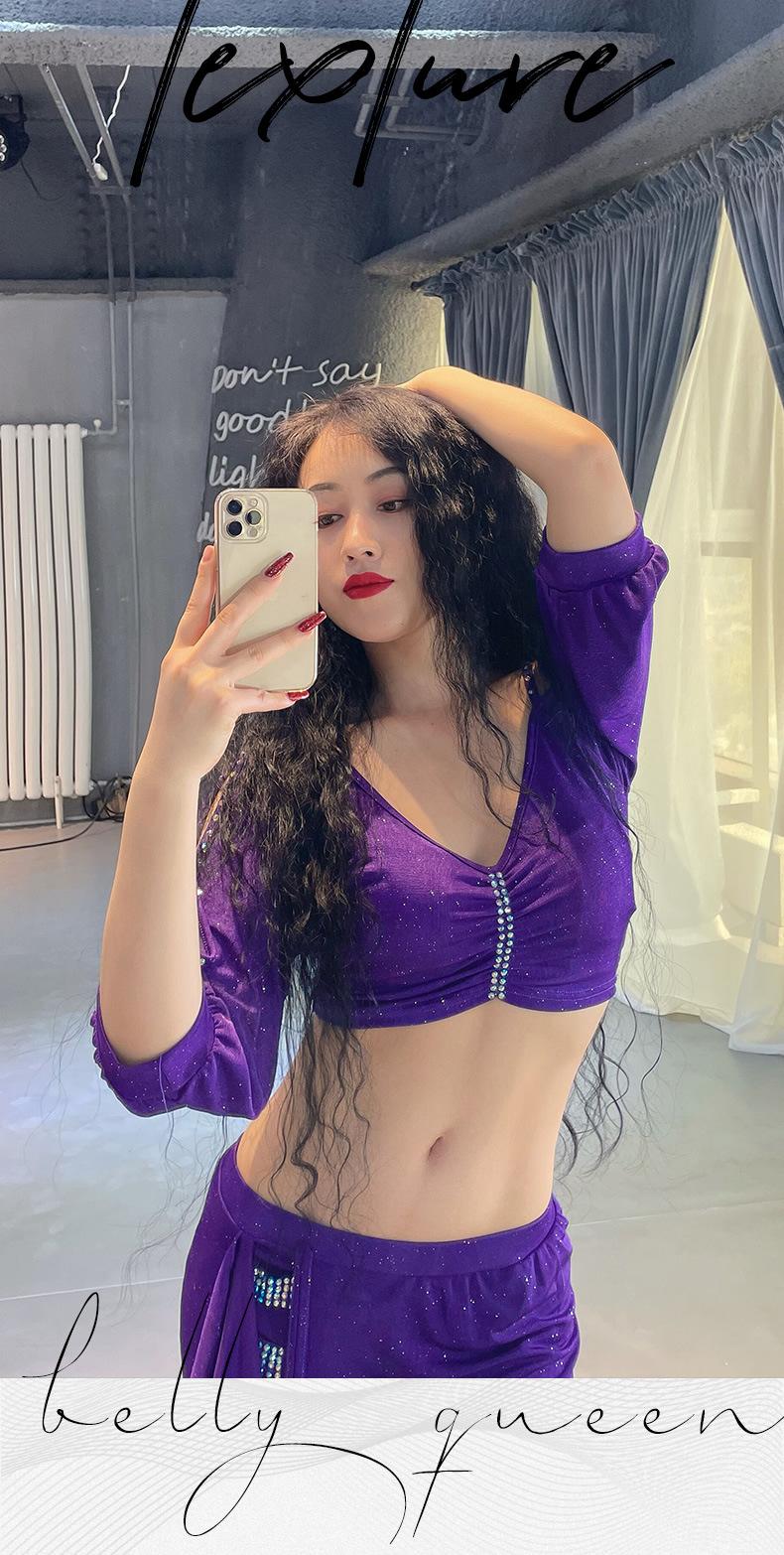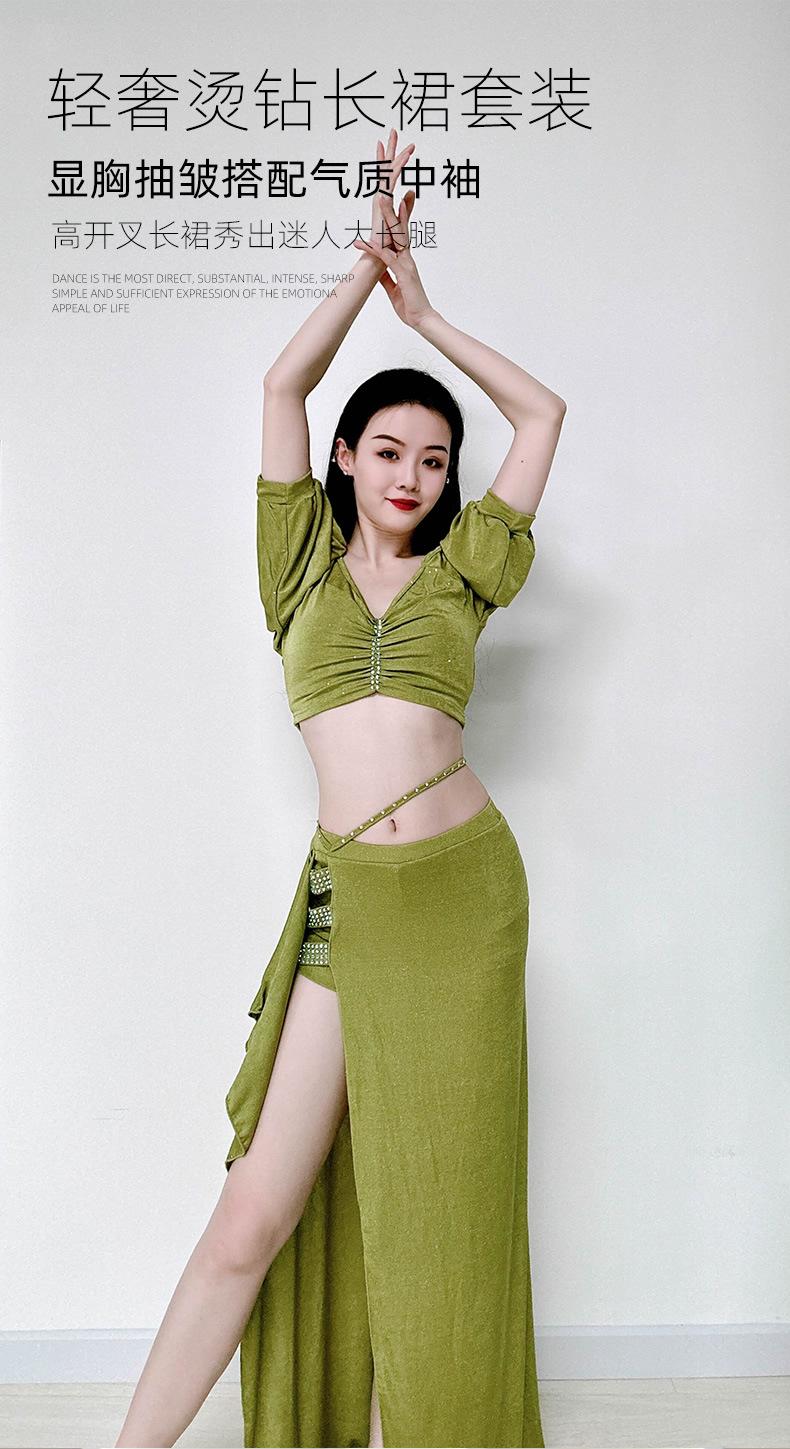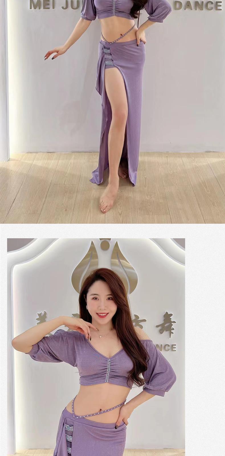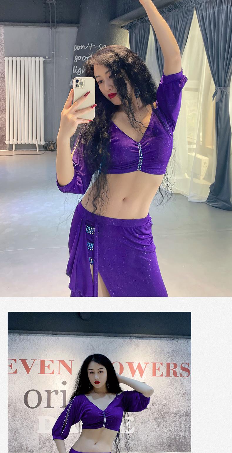 Roupa de prática de dança do ventre leve e luxuosa para dança do ventre, traje para dança oriental, temperamento de dança, manga média, iniciante 5060